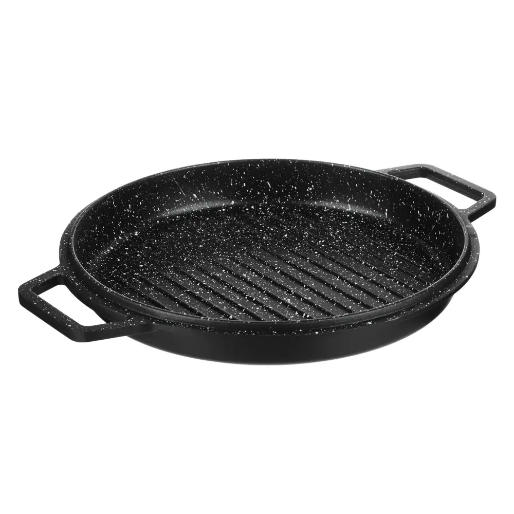 Алюминиевые ручки выдерживают высокие температуры, поэтому посуду можно использовать не только на плите, но и в духовом шкафу. Практичная крышка-сковорода расширяет функциональность изделия — её можно использовать отдельно для жарки или запекания.