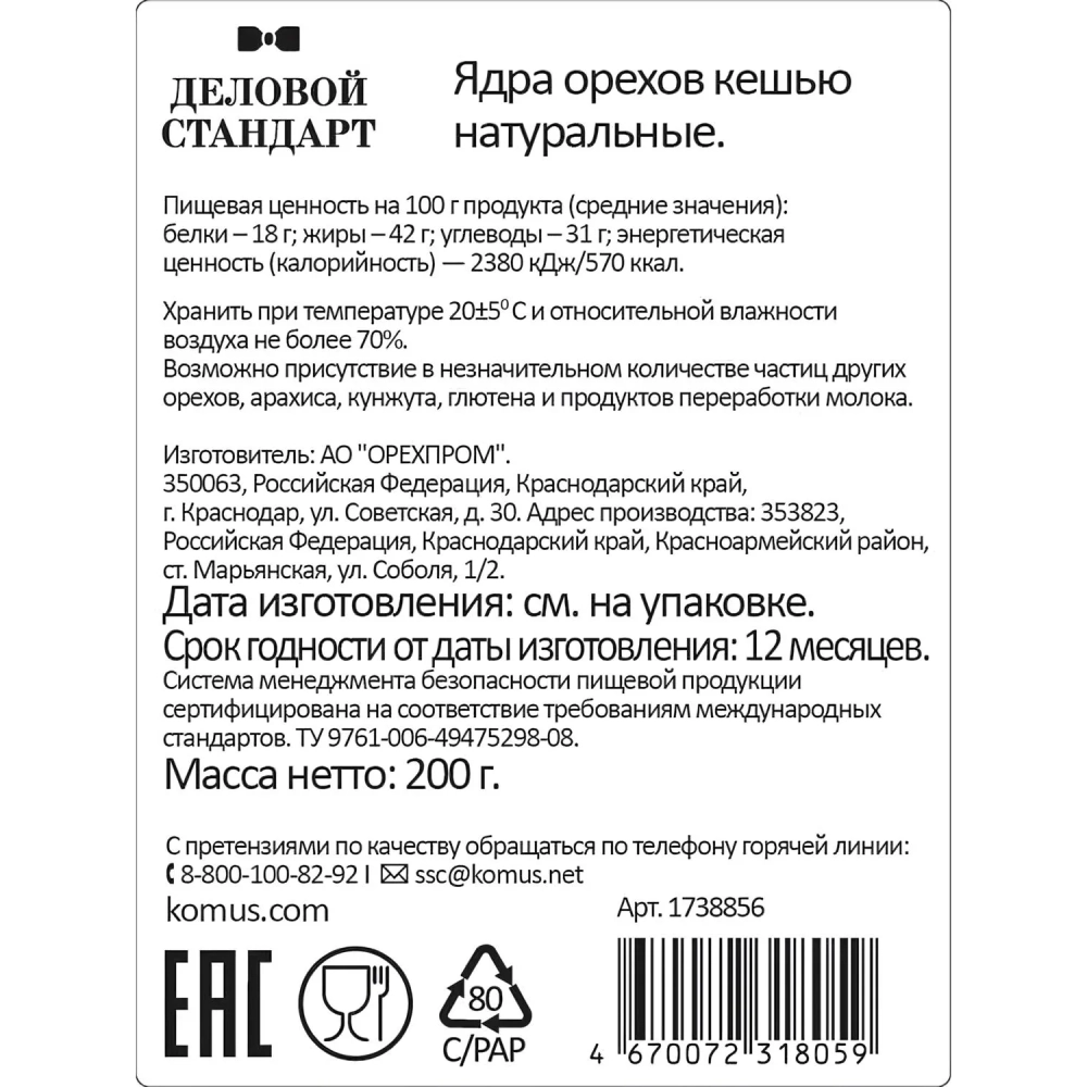 Кешью Деловой Стандарт, 200г