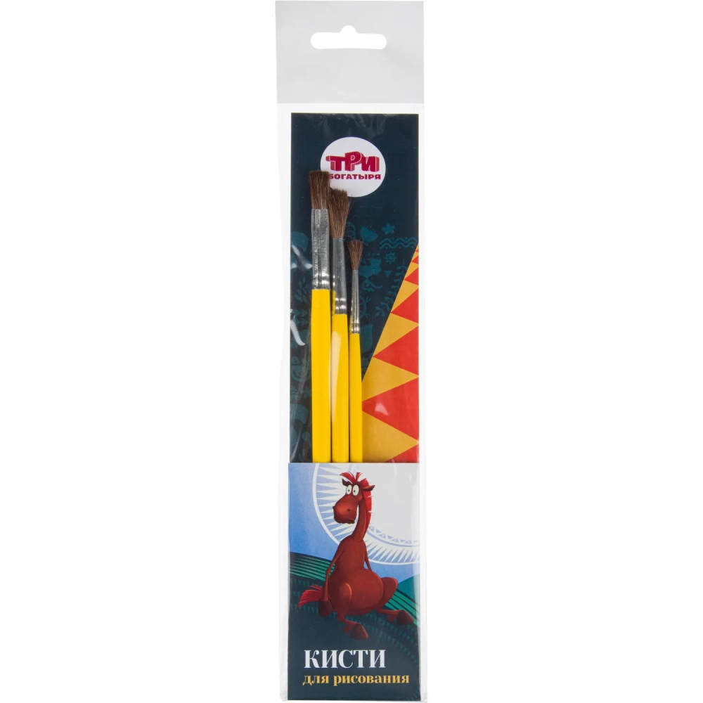Кисть набор 3 шт КОМУС Три Богатыря пони круглая №2,5; плоская №8