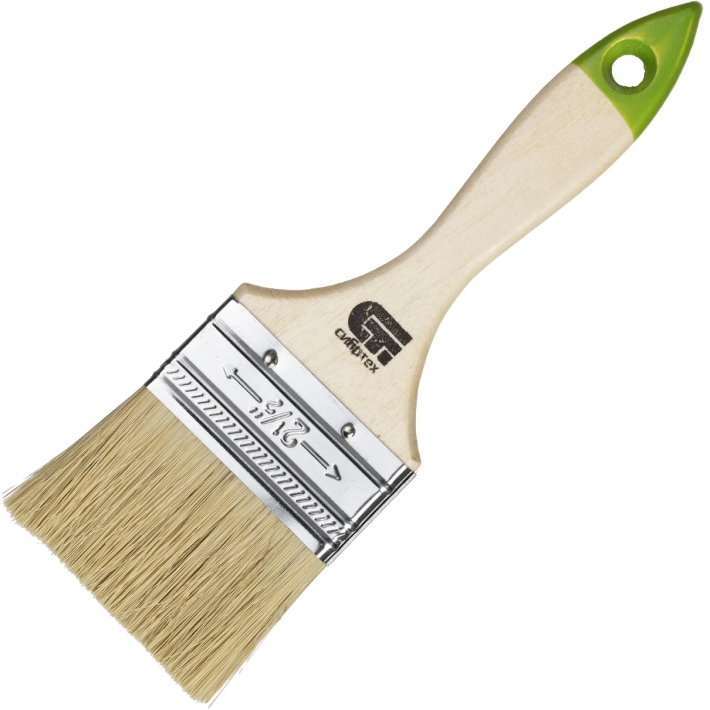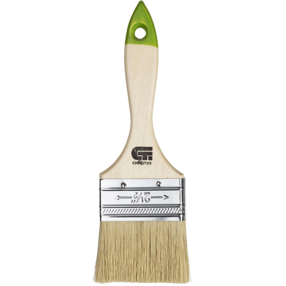 Кисть плоская 63 мм, натуральная щетина, деревянная ручка Сибртех (82264)