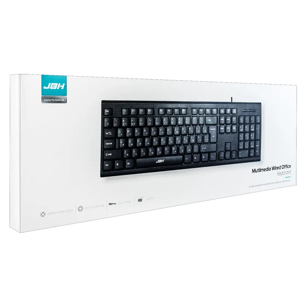 Клавиатура проводная JBH K2 - это современное и надежное решение для комфортной работы, сочетающее прочность и эргономичность. Корпус устройства изготовлен из карбона и ABS-пластика, что обеспечивает повышенную износостойкость и легкий вес. Клавиатура оснащена мембранными клавишами с оптимальным ходом, гарантирующими мягкий и тихий ввод, что особенно важно для офисных помещений. Проводное подключение через USB с кабелем длиной 1,35 метра обеспечивает стабильное соединение без задержек. Благодаря компактным размерам и прочным материалам, клавиатура отлично подходит для повседневной работы с текстами, программами и приложениями.**