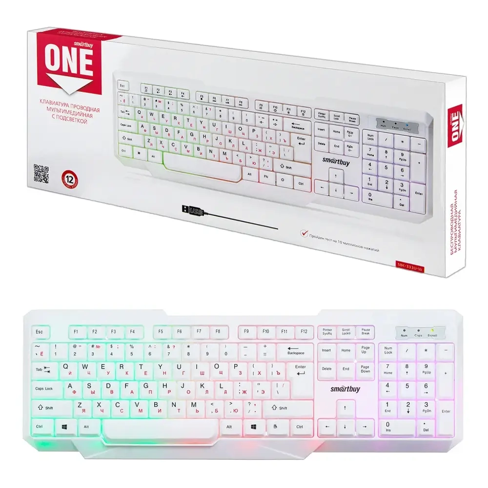 Клавиатура проводная с подсветкой Smartbuy ONE 333 USB белая