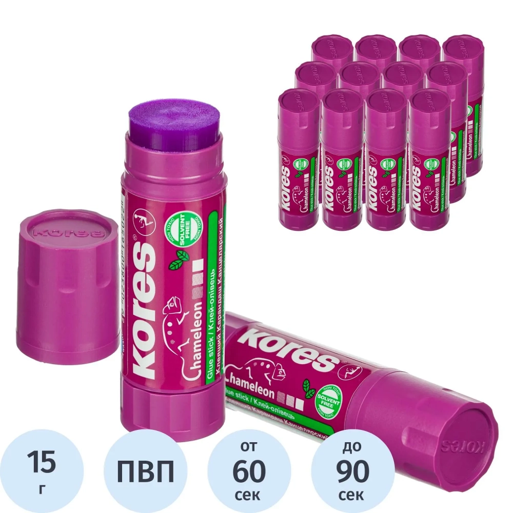 Клей-карандаш 15г KORES Chameleon (исчезающий цвет), 16501/16502