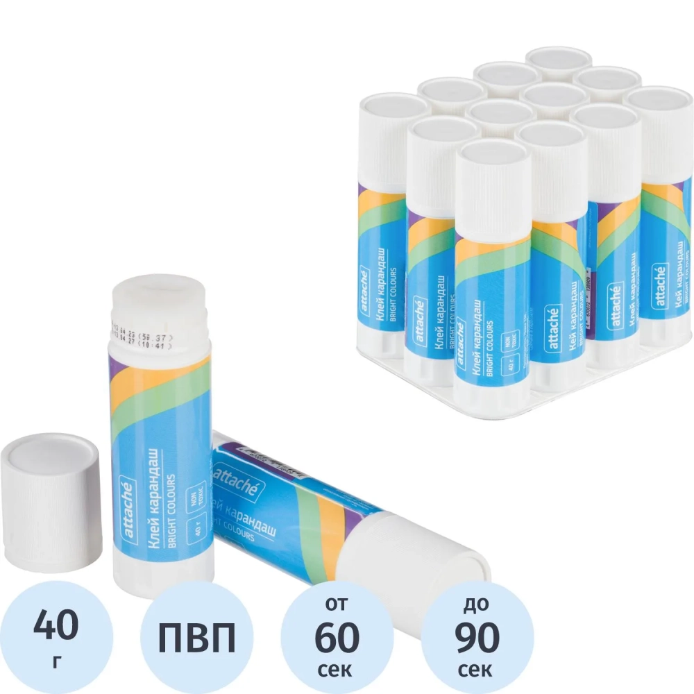 Клей-карандаш 40г Attache Bright colours, Чехия