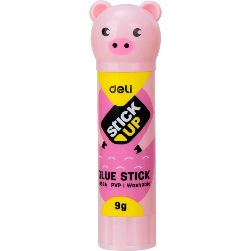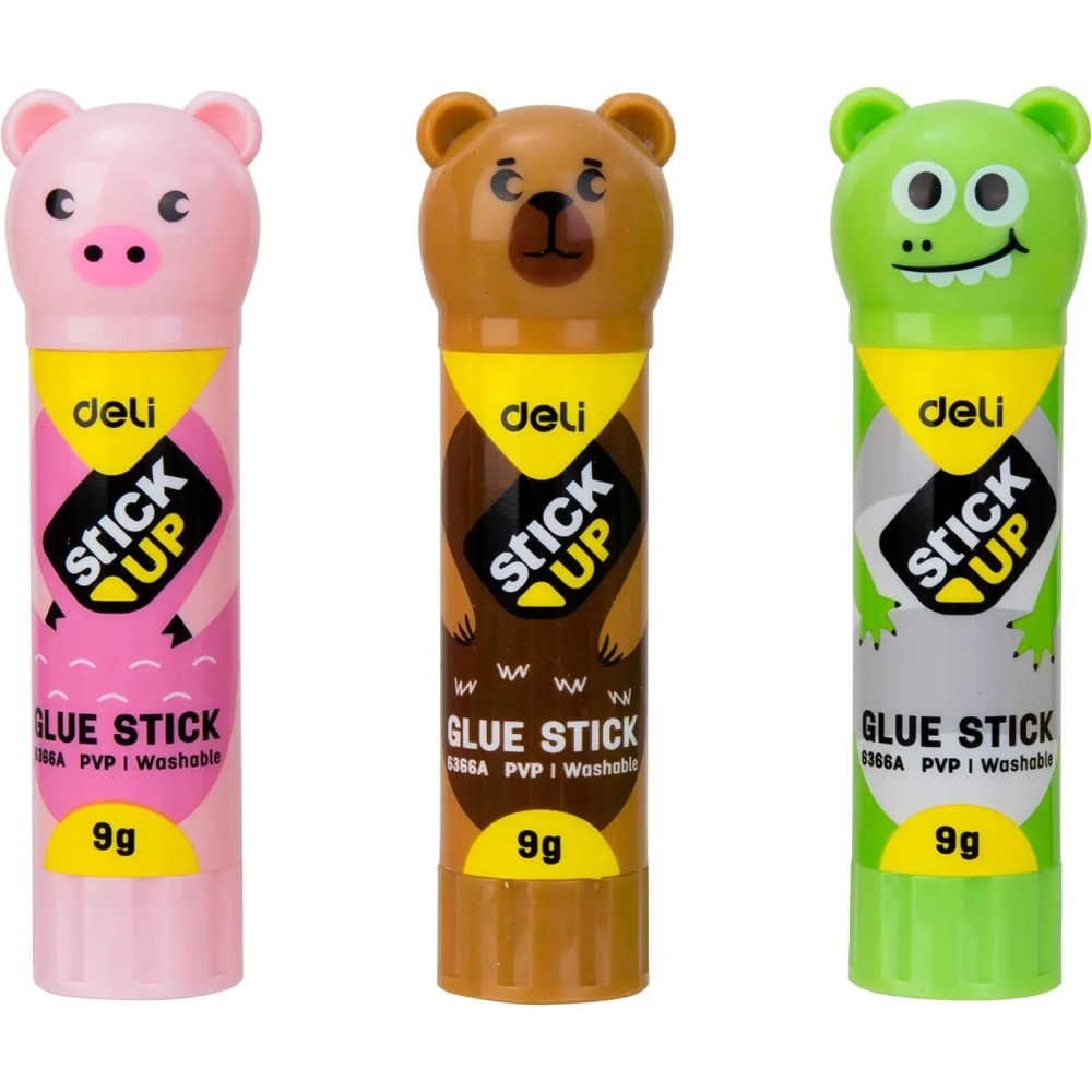Клей-карандаш школьный 9г Deli с колпачком в форме зверька, ассорти E6366A