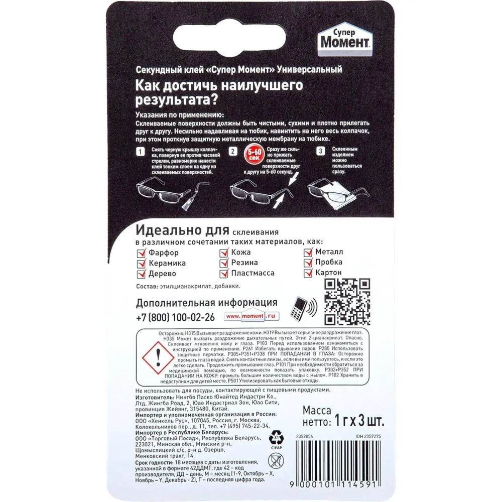 Клей секундный Супер Момент мини-трио, 1грx3шт, на блистере 2357275