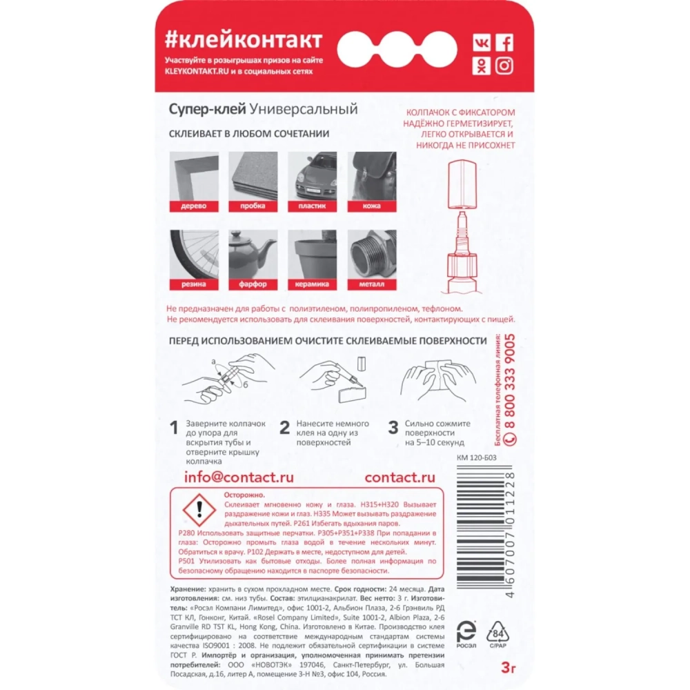 Клей универсальный Супер-клей КОНТАКТ 3 г, арт. КМ 288-312