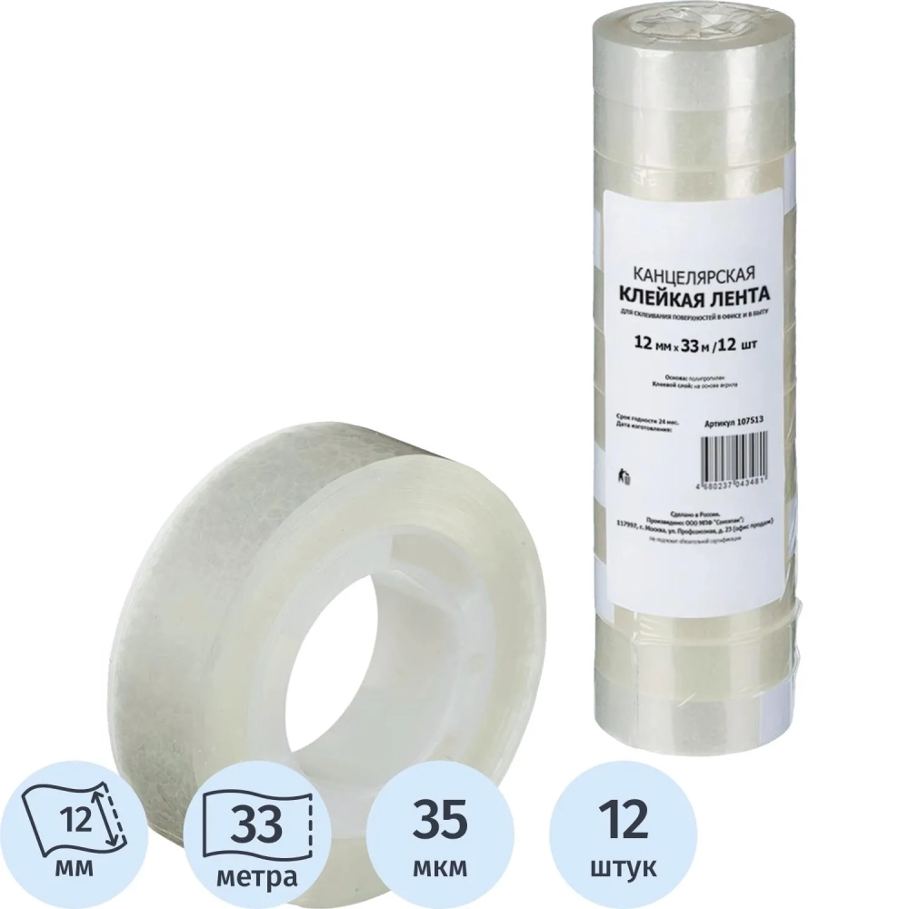 Клейкая лента канцелярская 12х33 12 шт./уп.