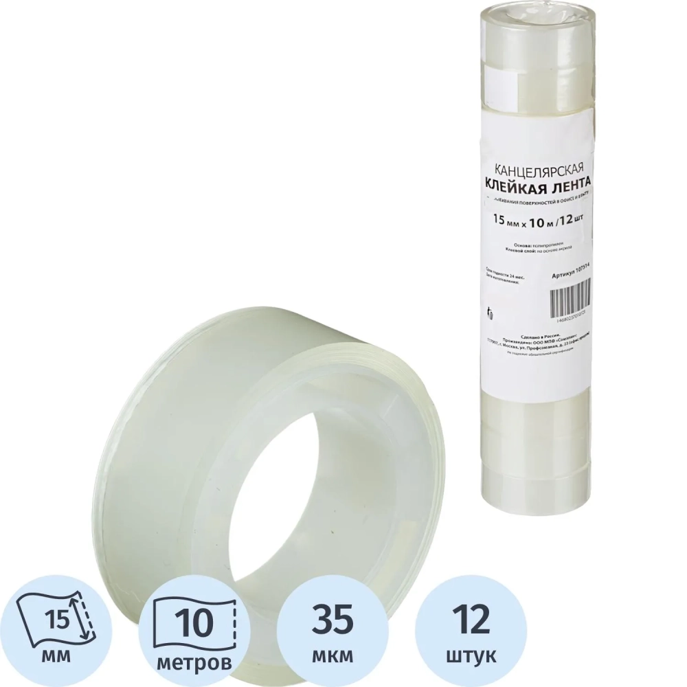 Клейкая лента канцелярская 15х10 12 шт./уп.