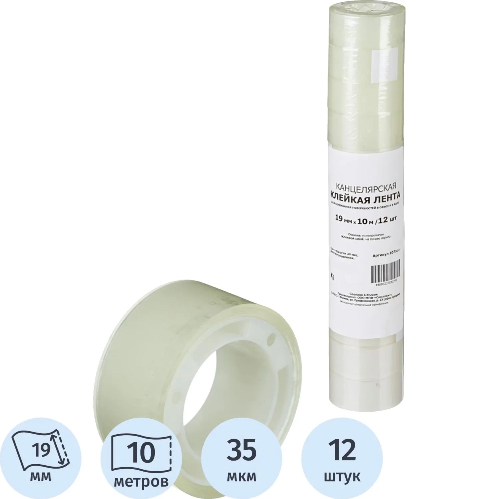 Клейкая лента канцелярская 19х10 12 шт./уп.