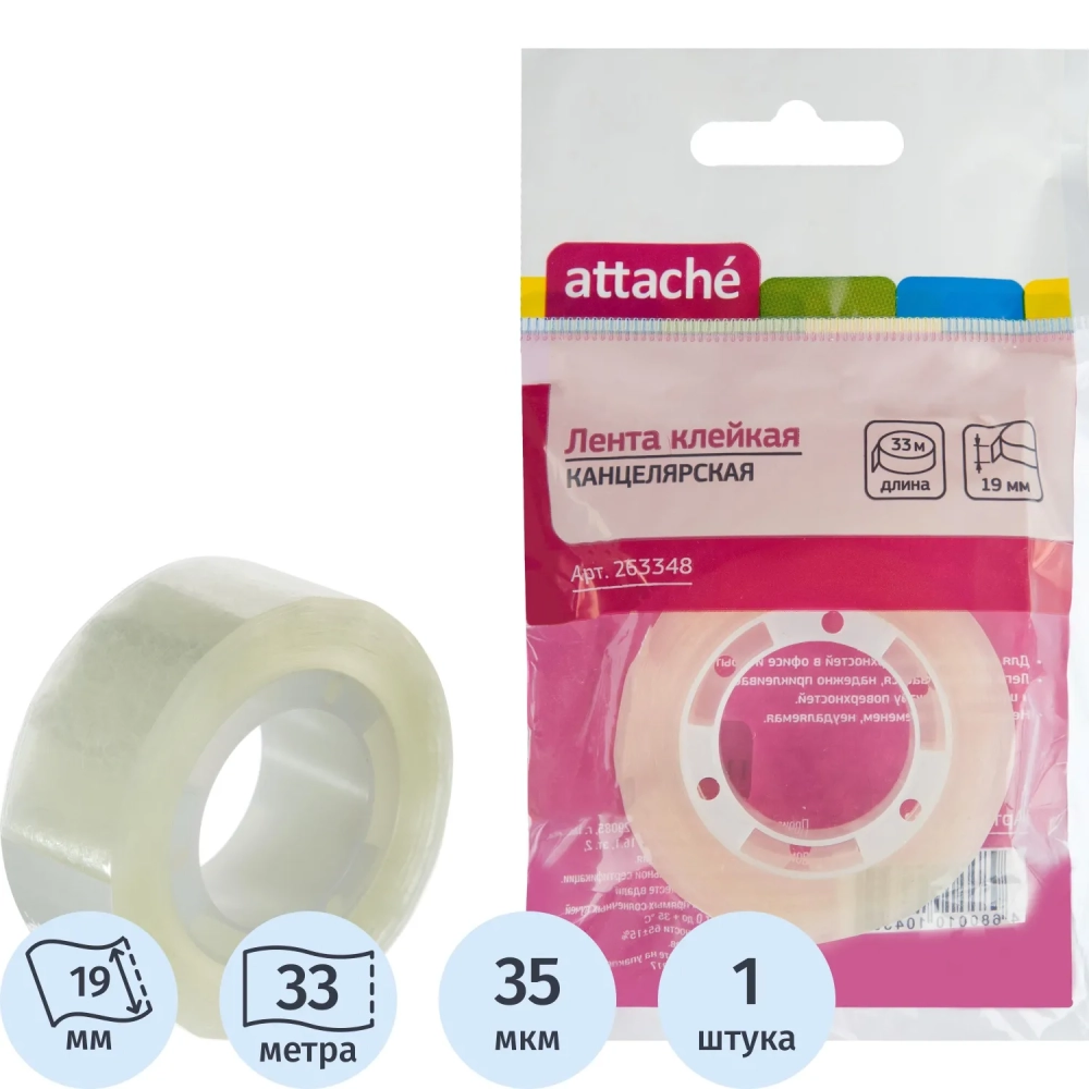 Клейкая лента канцелярская Attache 19x33, подвес