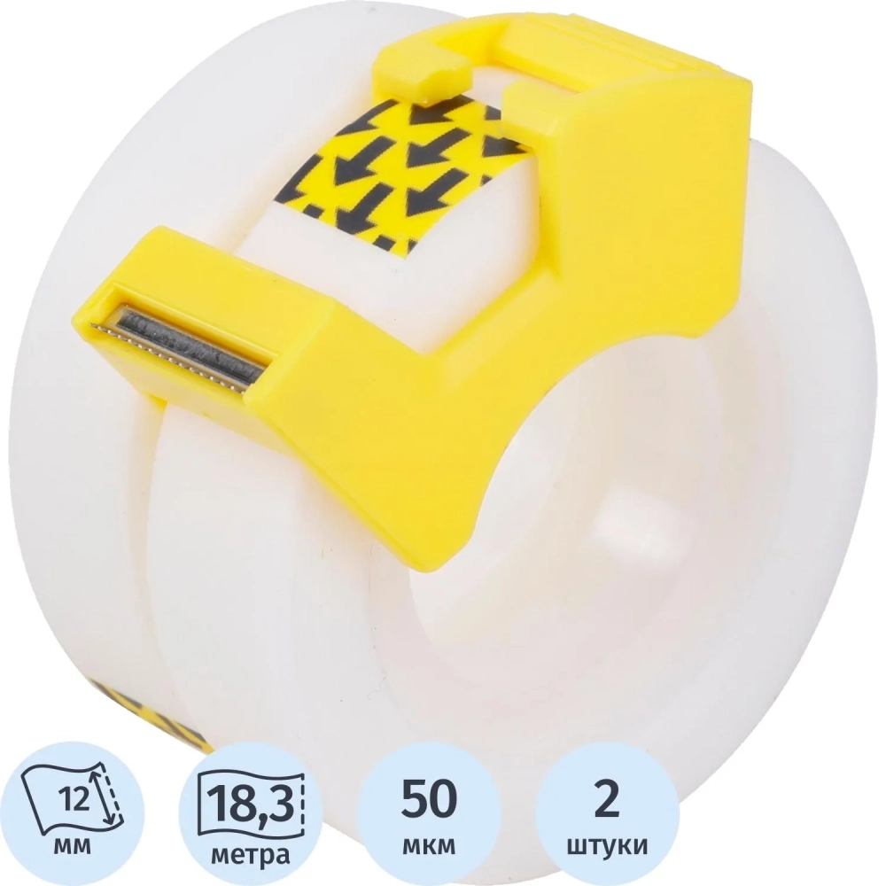 Клейкая лента канцелярская пластиковая,одност,прозр,12 мм x 18,3 м,2 шт