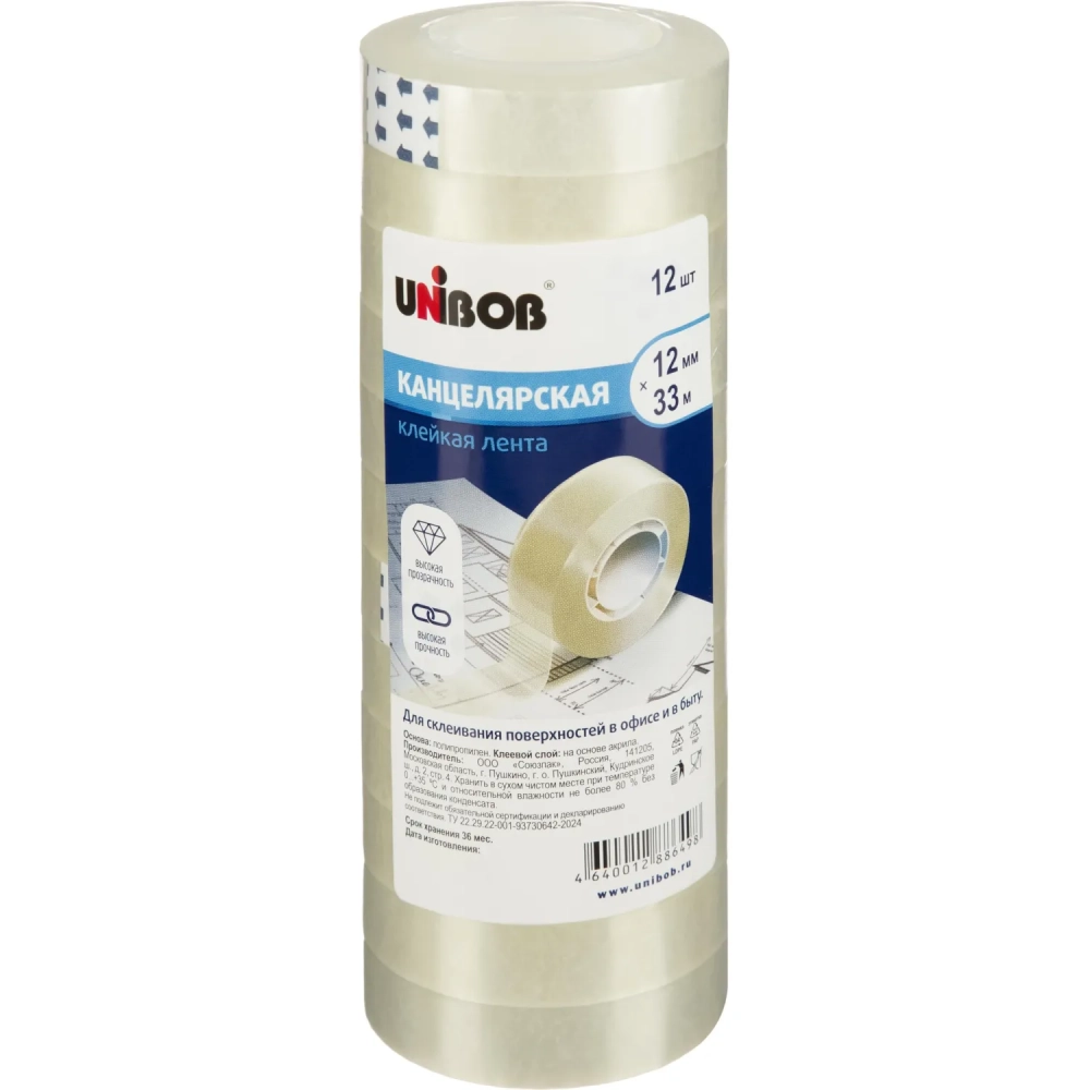 Клейкая лента канцелярская Unibob 12x33 (12шт/уп)