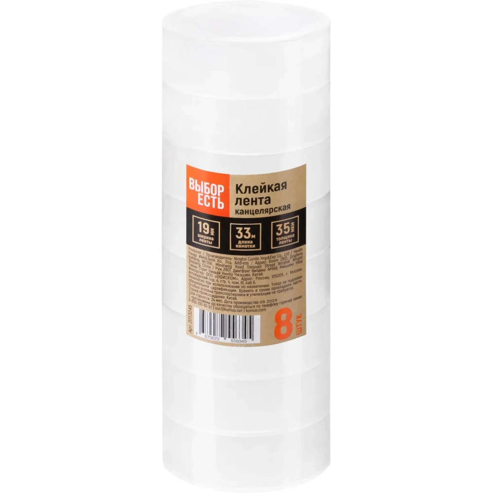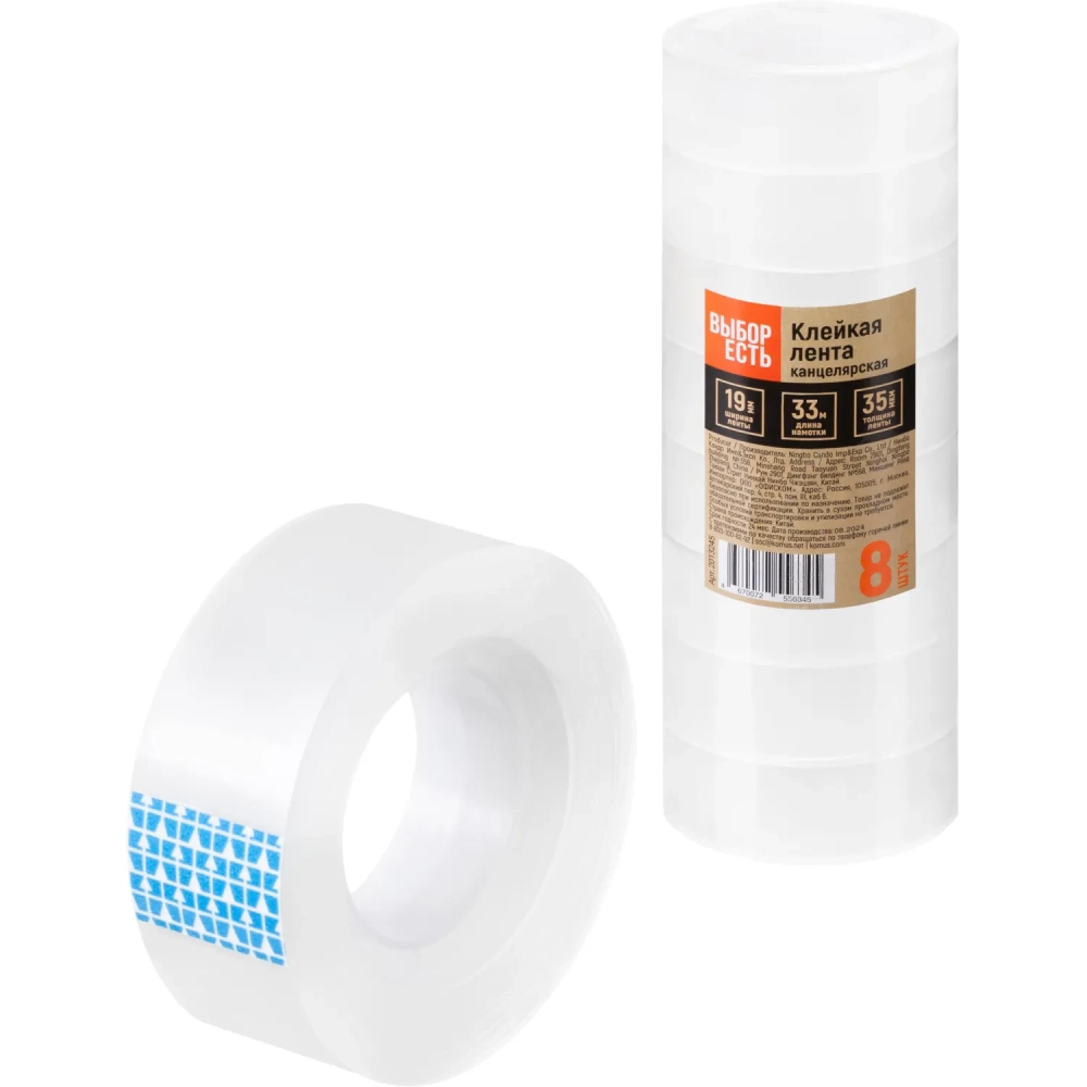 Клейкая лента канцелярская Выбор есть 19мм х 33м 35 мкм 8 шт./уп