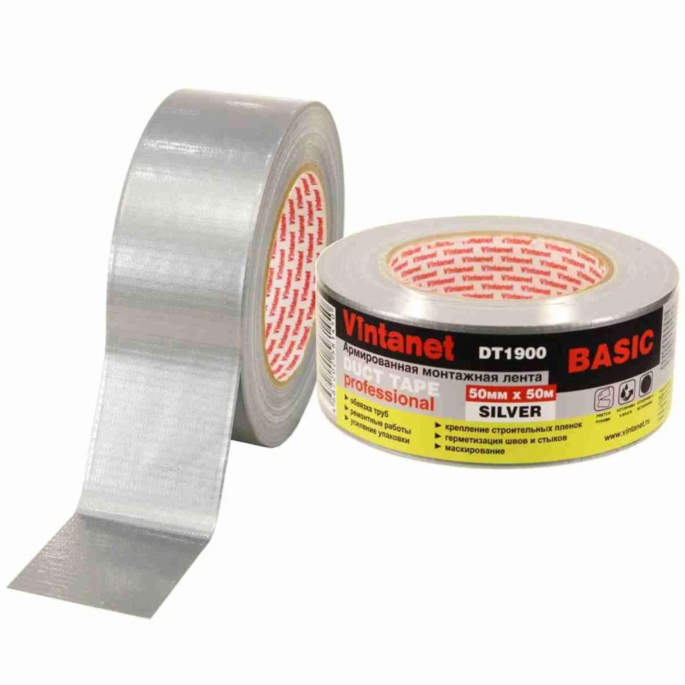 Клейкая лента монтаж.армир.DT1900 базовая Vintanet, серебряная, 50мм х 50 м