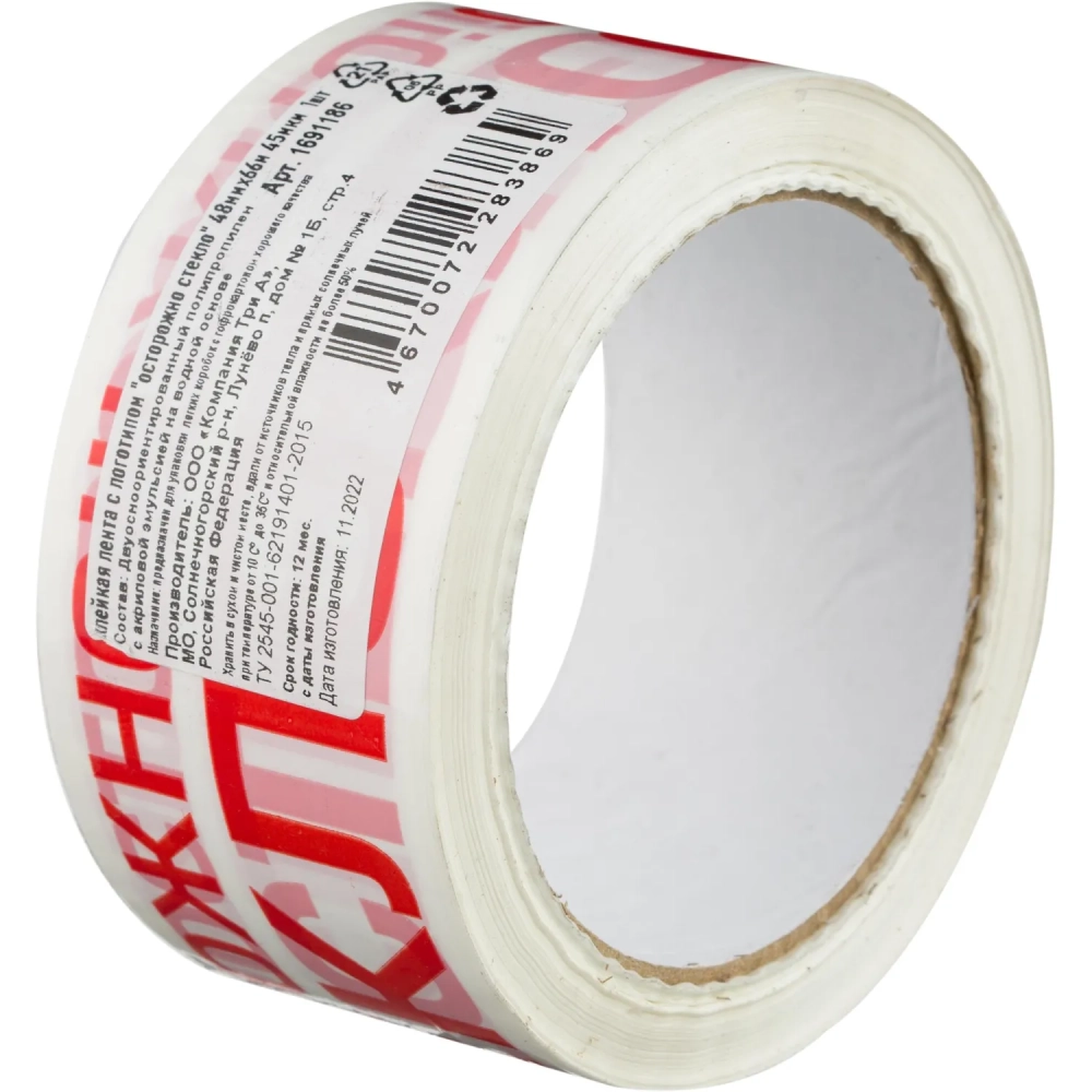 Клейкая лента с логотипом Осторожно стекло 48ммх66м 45мкм