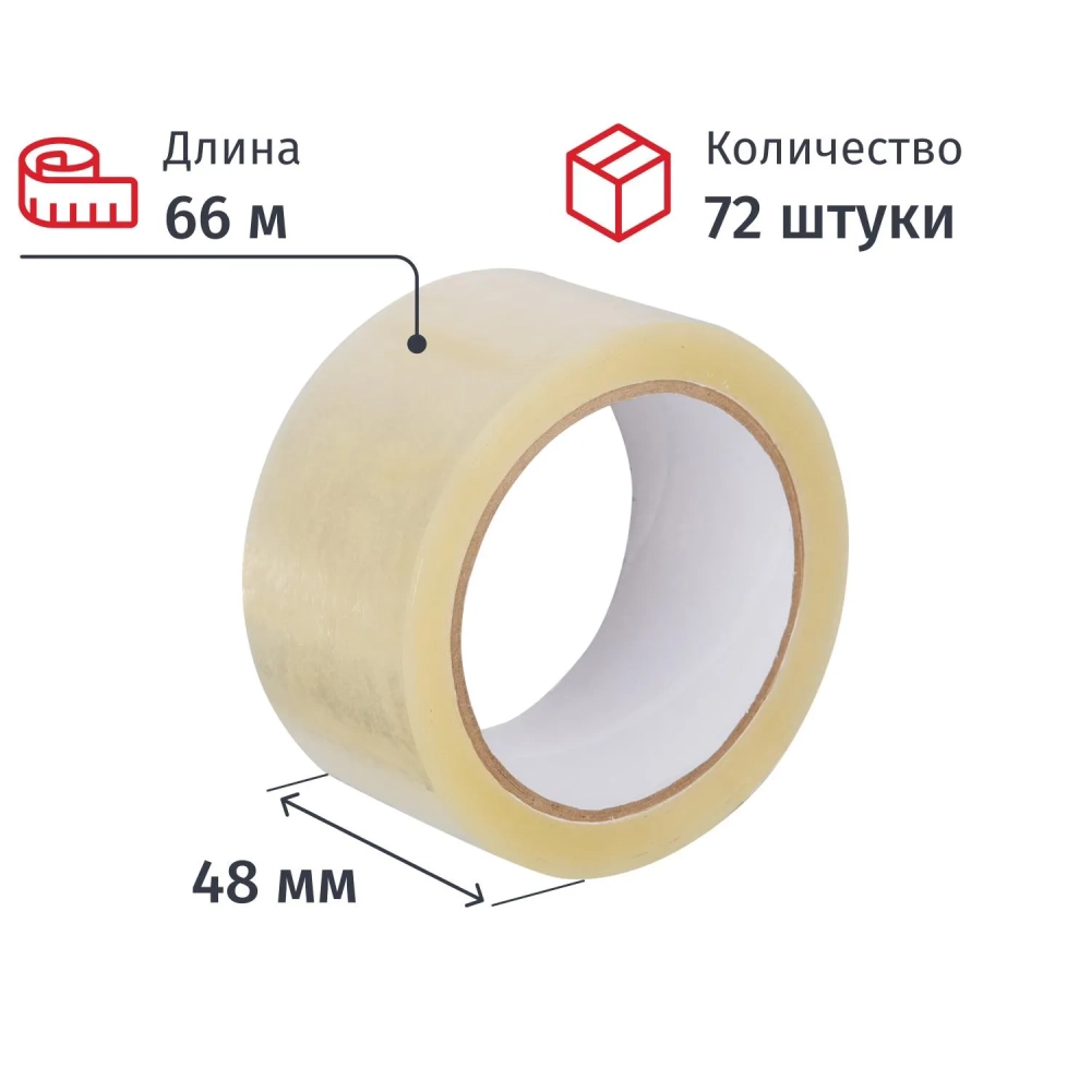 Клейкая лента упаковочная 48мм х 66м 45мкр прозрачная 72шт/уп СПб