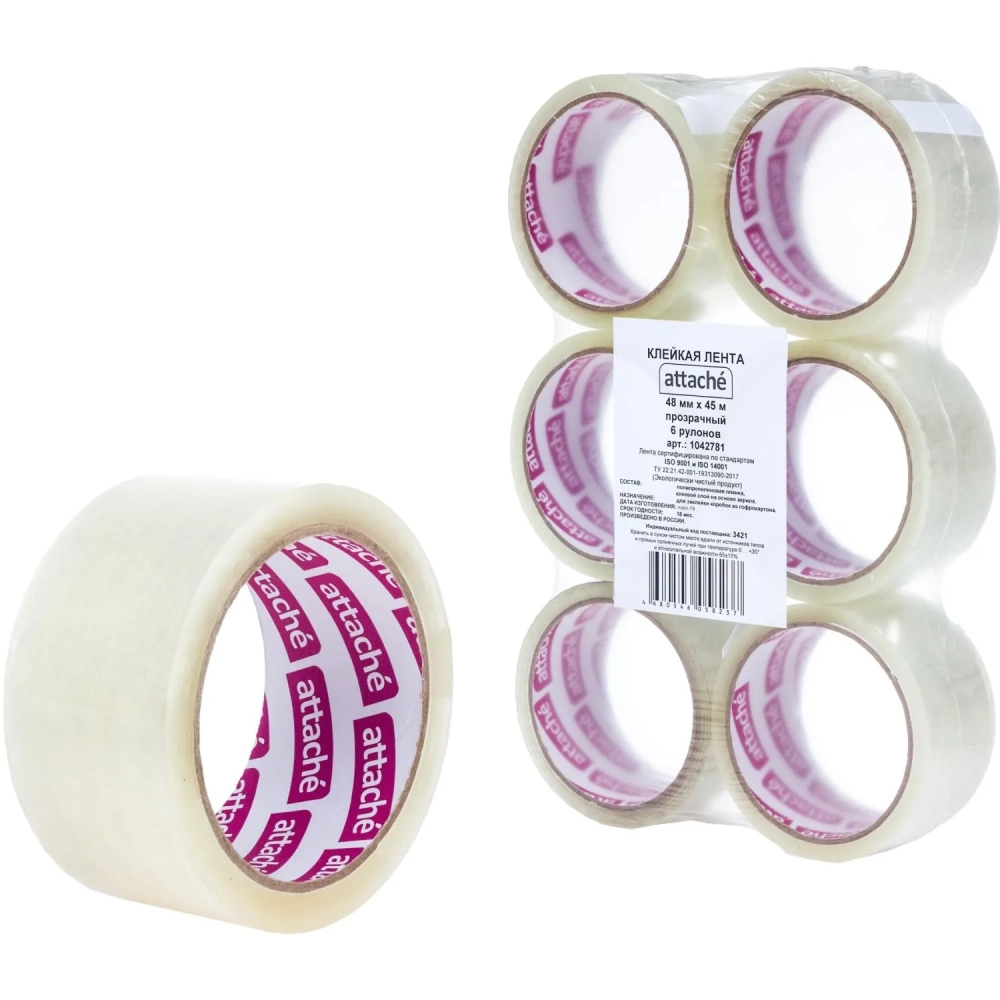 Клейкая лента упаковочная Attache 48мм х 45м 40мкм прозрачная 6 шт/уп