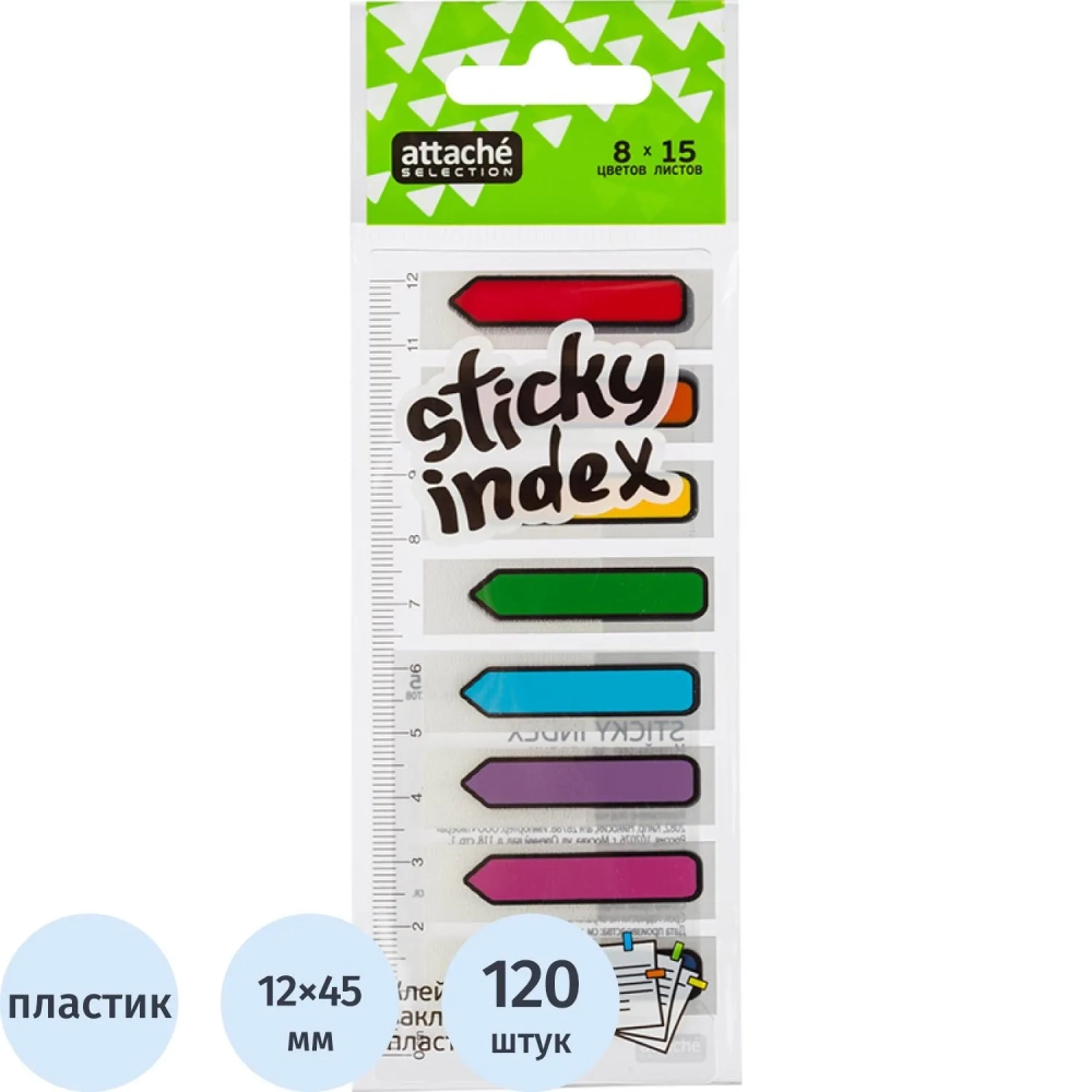 Клейкие закладки пласт. Стрелка 8цв.по 15л. 45ммх12 Attache Selection