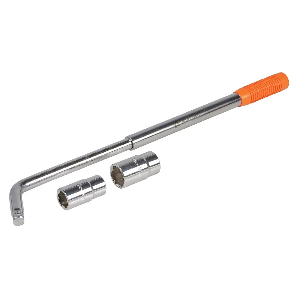 Ключ баллонный телескопический изготовлен из высокопрочной стали. Предназначен для монтажа/демонтажа резьбовых соединений при замене колес на легковых автомобилях. Универсальность данного баллонного ключа заключается в наличии нескольких размеров, тем самым позволяя использовать его с большим количеством колесного крепежа. Также он оснащен телескопическим механизмом, что позволяет увеличть рычаг и прилагаемое к нему усилие. Абсолютно все баллонные ключи производятся по единой технологии на современных автоматизированных предприятиях. Тестирование каждого ключа происходит в собственной испытательной лаборатории в два этапа, что является залогом качества и надежности.