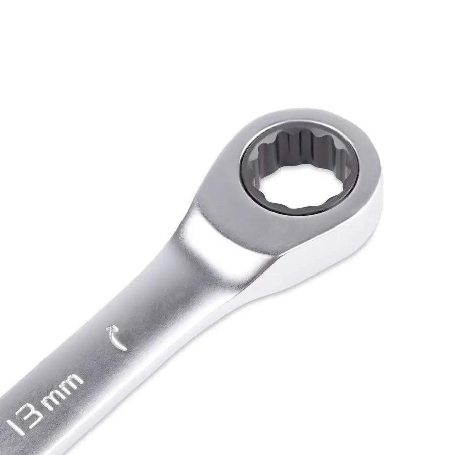Комбинированный гаечный ключ из хромованадиевой стали с 72-зубцовым храповым механизмом в накидной части. Благодаря наличию трещотки, ключ ускоряет отворачивание и заворачивание крепежа как в обычных условиях, так и в условиях ограниченного пространства.