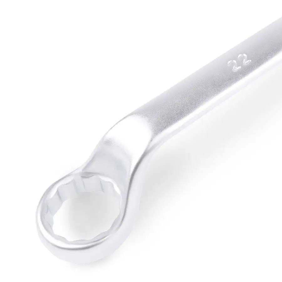 Накидной ключ – это рукоять и зажимная часть, которая охватывает весь периметр гайки. Он более удобен в эксплуатации и надежнее фиксирует крепеж, чем рожковый. Применяется для работ с высоконагруженными резьбовыми соединениями. Изогнутая на 75° коленчатая рабочая часть облегчает доступ в труднодоступные места. Кольцевые ключи имеют 12 граней. 12-тигранный ключ более распространен в использовании (поворот на 30 градусов). Из-за большого пятна контакта вероятность деформации углов сведена к нулю. Ключи изготавливаются из легированной хромованадиевой стали по стандарту DIN 838, в соответствии с ГОСТ 2906-80.
