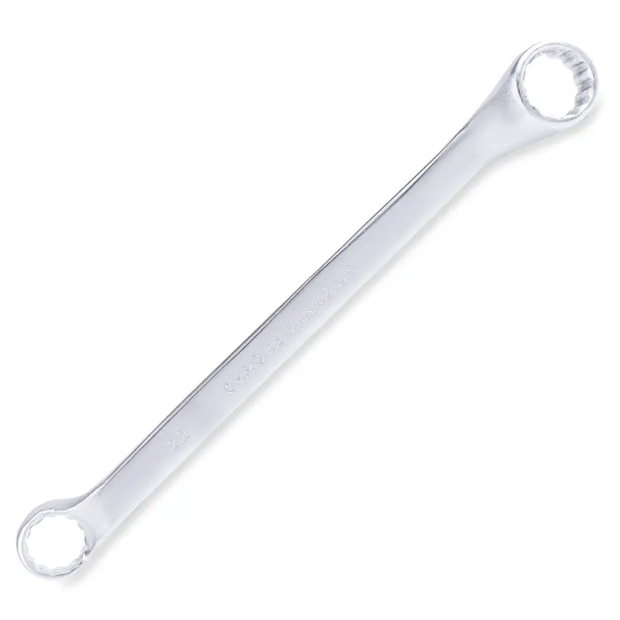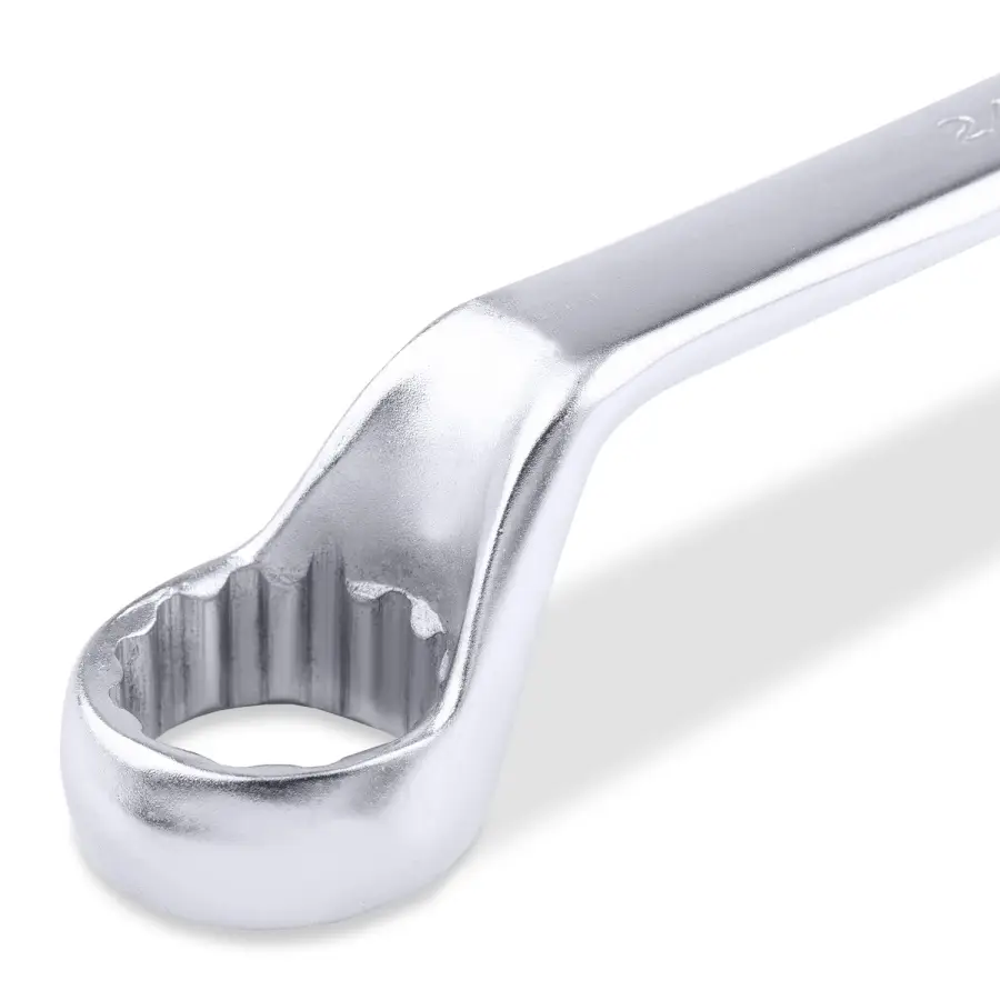 Накидной ключ – это рукоять и зажимная часть, которая охватывает весь периметр гайки. Он более удобен в эксплуатации и надежнее фиксирует крепеж, чем рожковый. Применяется для работ с высоконагруженными резьбовыми соединениями. Изогнутая на 75° коленчатая рабочая часть облегчает доступ в труднодоступные места. Кольцевые ключи имеют 12 граней. 12-тигранный ключ более распространен в использовании (поворот на 30 градусов). Из-за большого пятна контакта вероятность деформации углов сведена к нулю. Ключи изготавливаются из легированной хромованадиевой стали по стандарту DIN 838, в соответствии с ГОСТ 2906-80.