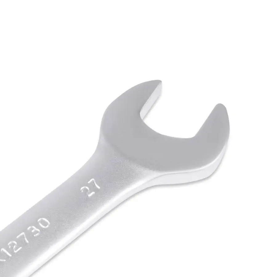 Рожковый гаечный ключ, он же гаечный с открытым зевом – это рукоятка с двумя рабочими краями, рабочая часть которых – U-образная подкова. Незаменимый универсальный инструмент для обслуживания крепежа, доступного лишь, с одной стороны. Крепеж надежно фиксируется в вилке и с помощью рычага происходит давление на откручивание или затягивание резьбового соединения. Инструменты изготавливаются из хромованадиевой стали по стандарту DIN 3110 и соответствуют требованиям ГОСТ 2838-80 и ГОСТ 10112-2001 по размерному ряду.