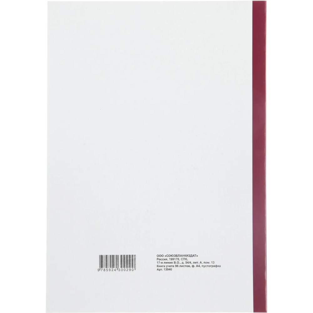 Книга учета 96л. пустографка, обл.картон