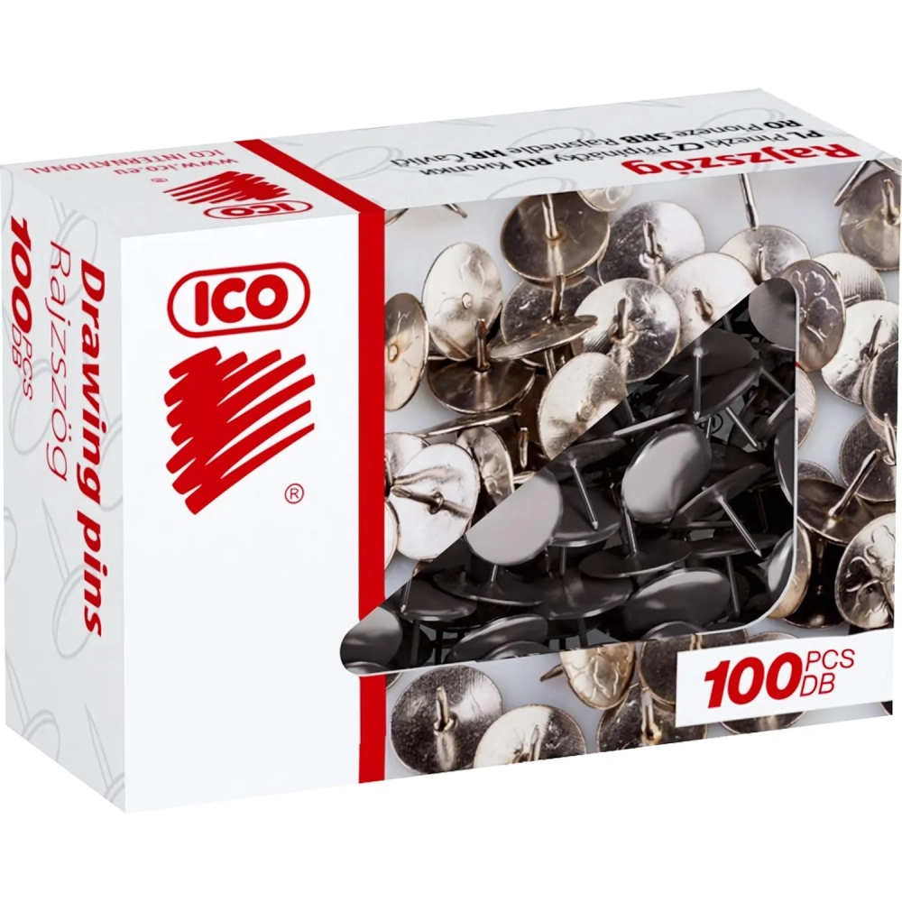 Кнопки канцелярские ICO стальные, 11 мм, стальные, 100 шт. карт.уп