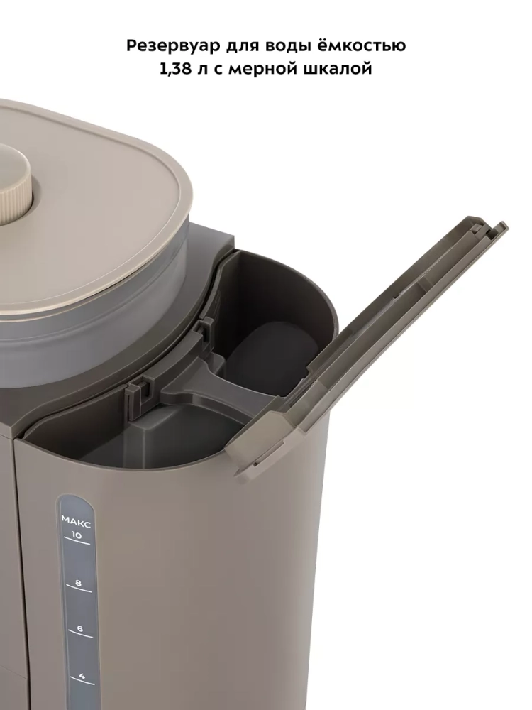 Резервуар для воды оснащен мерной шкалой, благодаря которой вы сможете с легкостью приготовить кофе в необходимом количестве.