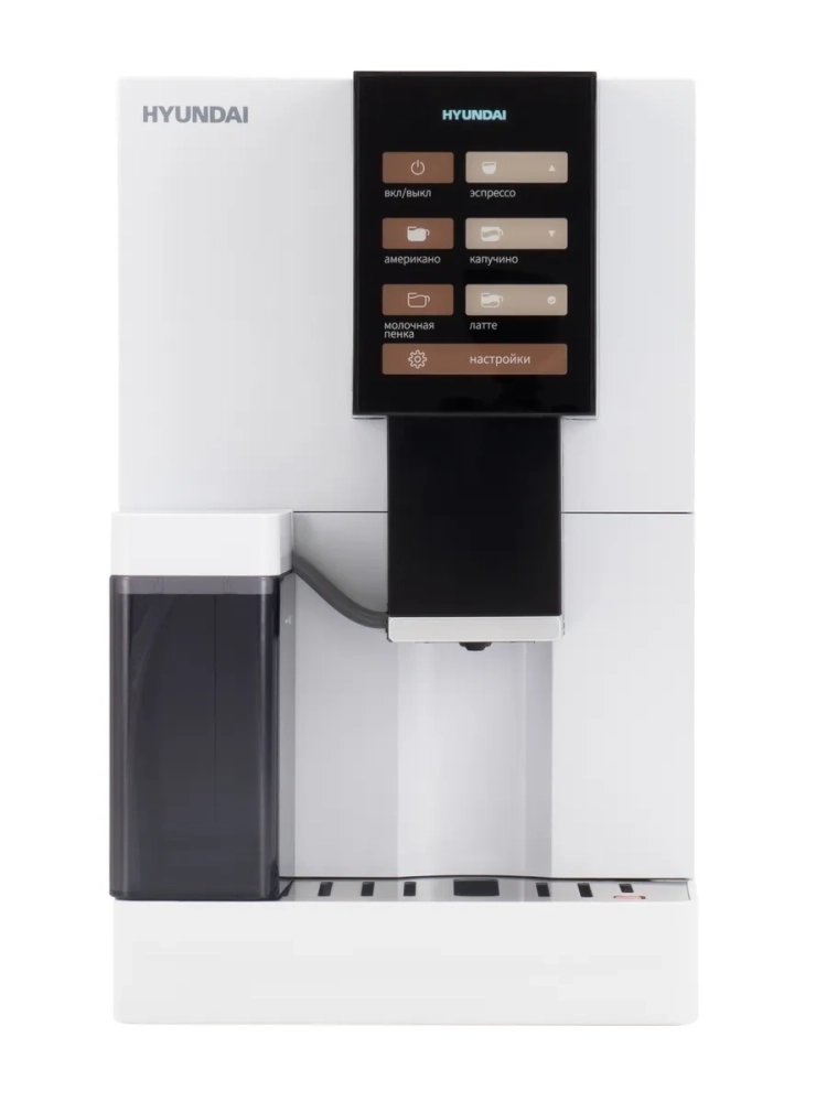 Кофемашина Hyundai HAM-5104 белый, мощность 1500Вт, используется зерновой кофе, давление помпы 19Бар, объем резервуара для воды 1.2л.