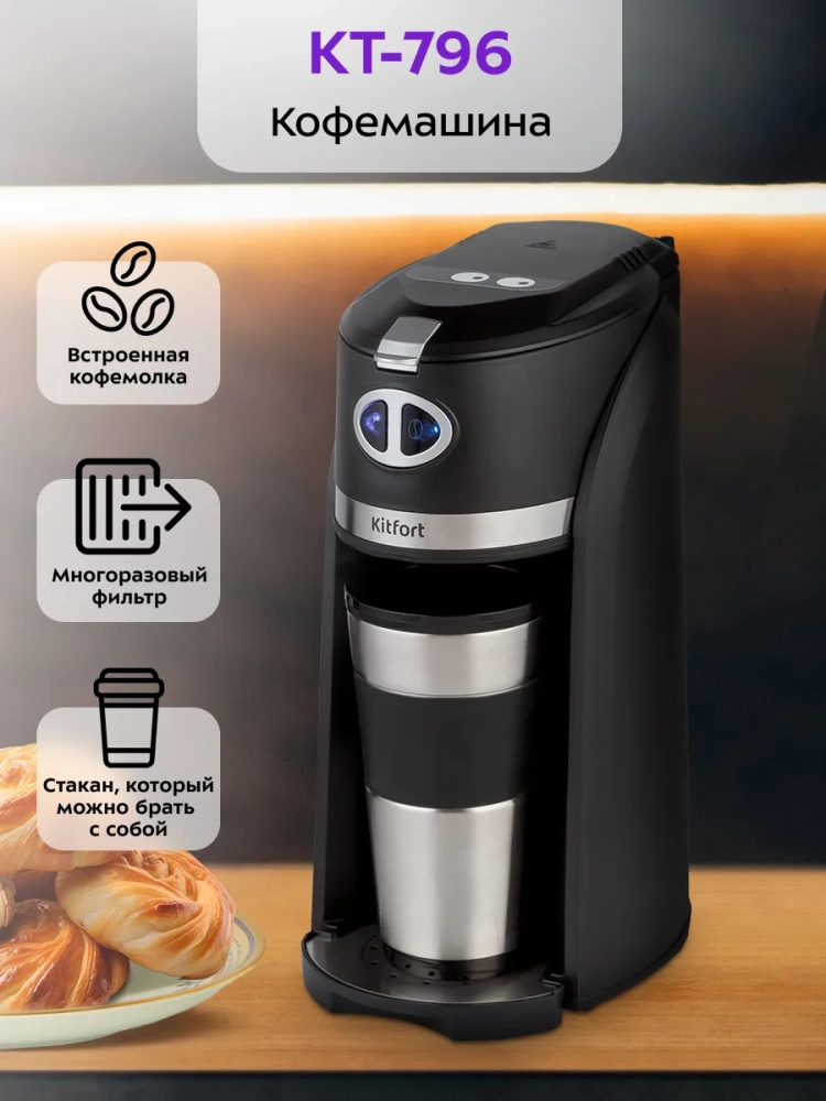 Кофемашина КТ-796 кофеварка капельная с термокружкой 420 мл