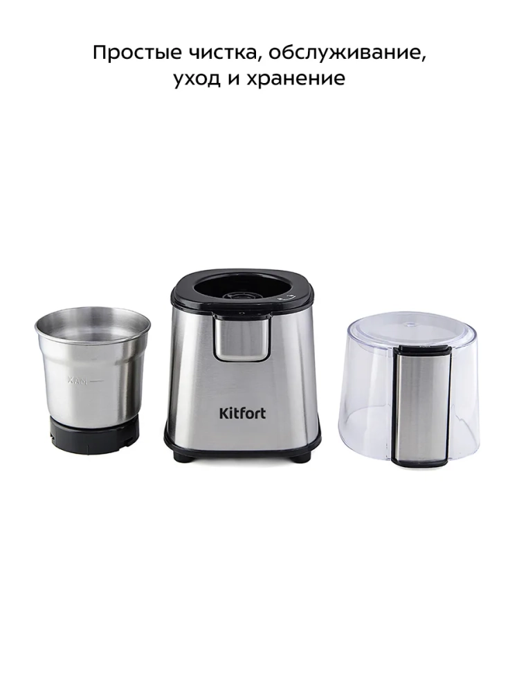 Кофемолка Kitfort — это не просто средство для измельчения, но и стильный элемент интерьера вашей кухни. Она гармонично вписывается в любой дизайн, добавляя современности и функциональности. В комплекте с кофемолкой вы найдете контейнер для хранения молотого кофе, что позволяет сохранить его свежесть на длительное время.