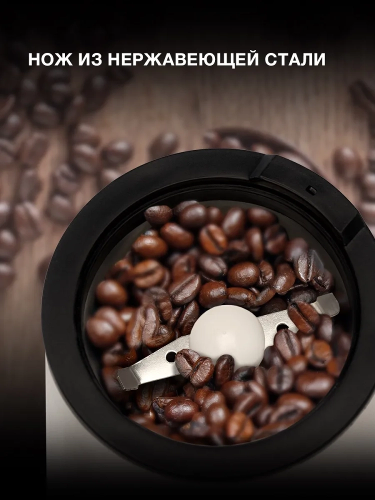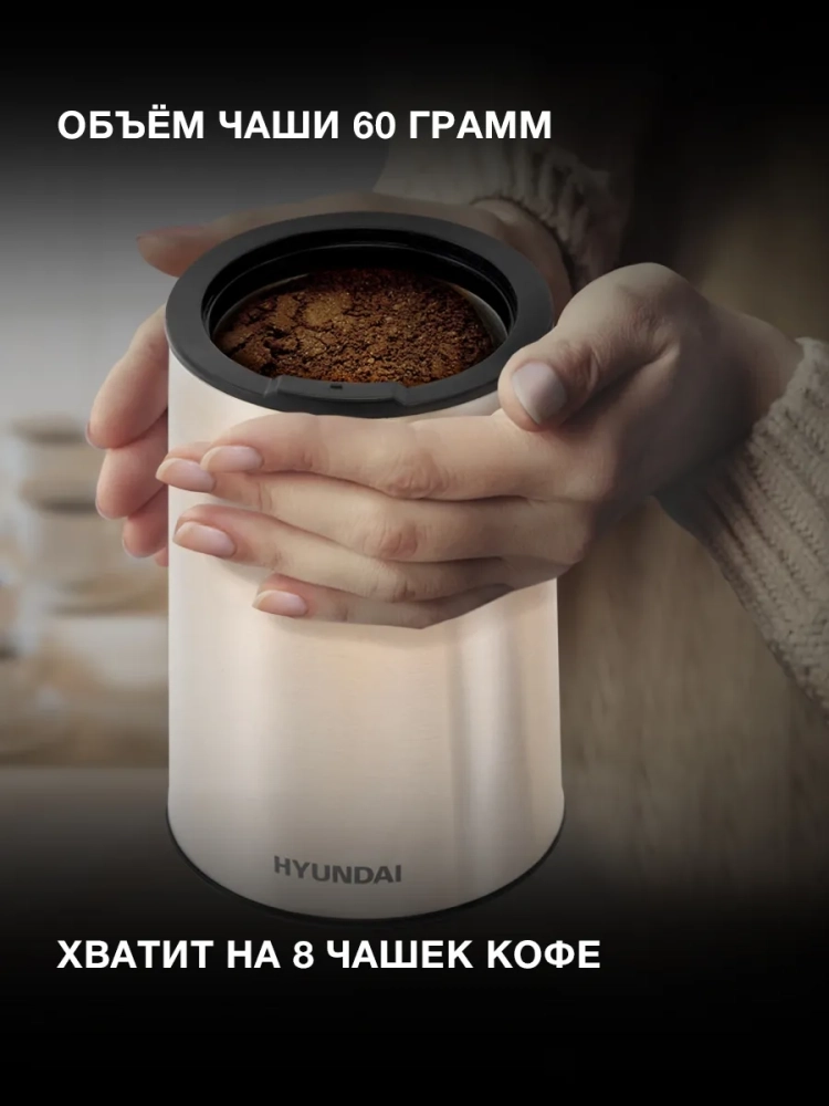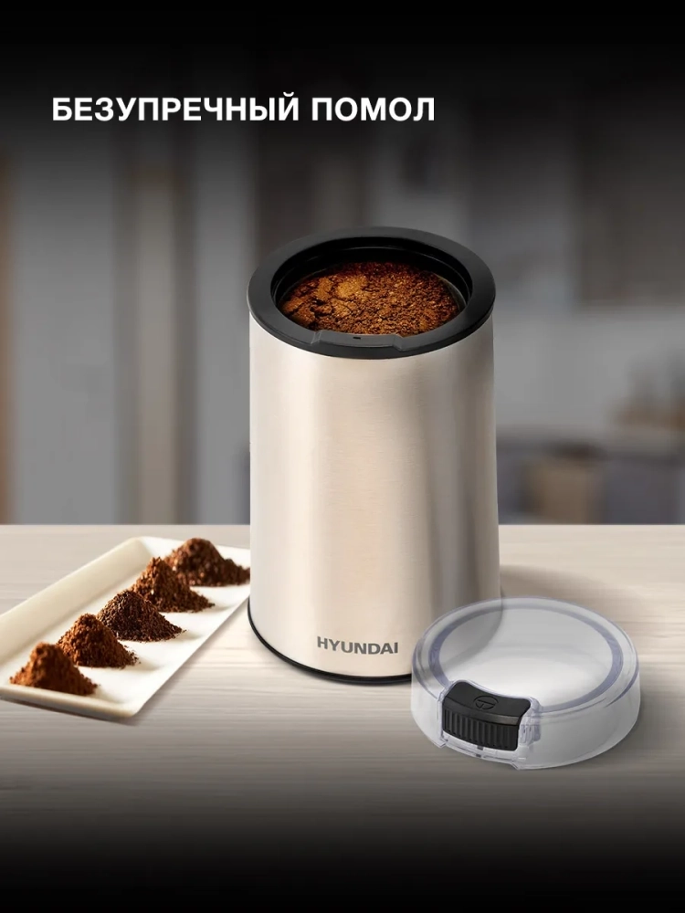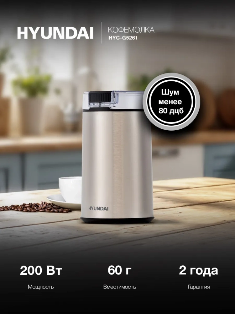 Кофемолка Hyundai HYC-G5261 200Вт сист.помол.:ротац.нож вместим.:60гр серебристый.