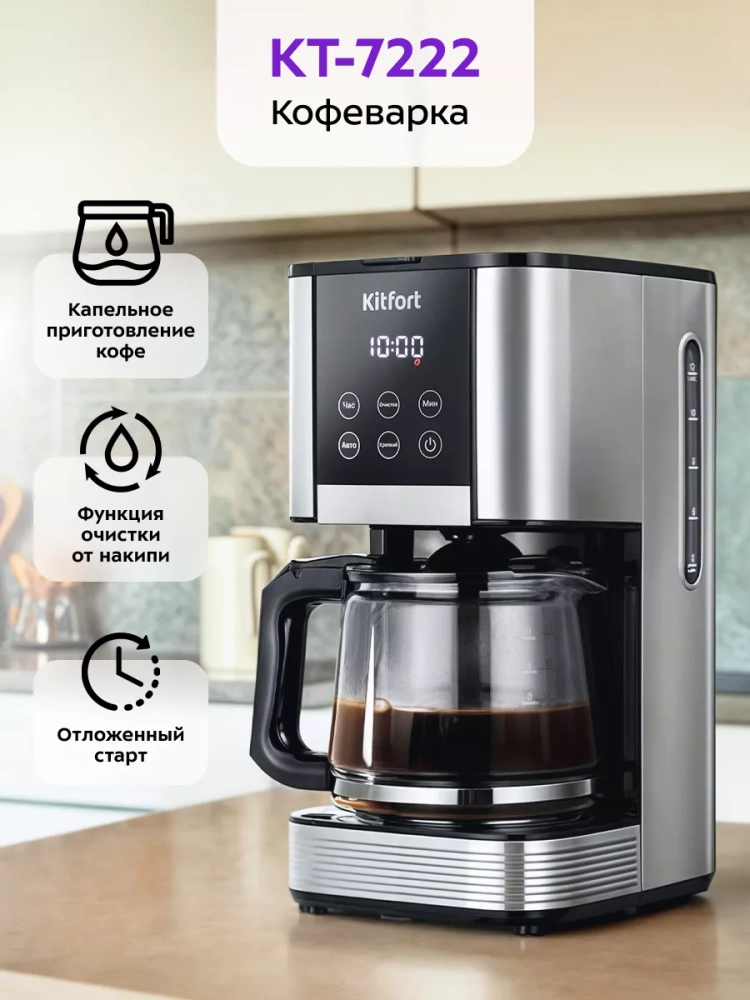 Кофеварка электрическая капельная 1000 Вт КТ-7222