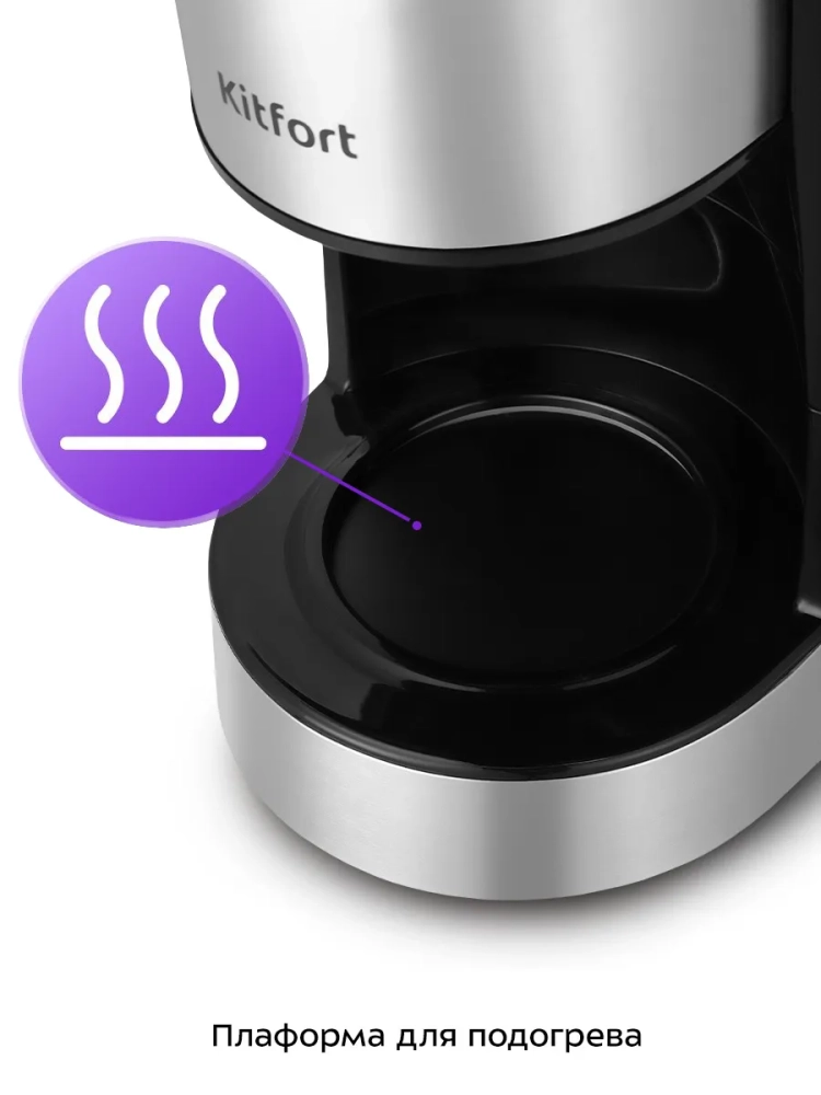 Капельная кофеварка Kitfort КТ-7329 готовит ароматный черный кофе из молотого кофе.