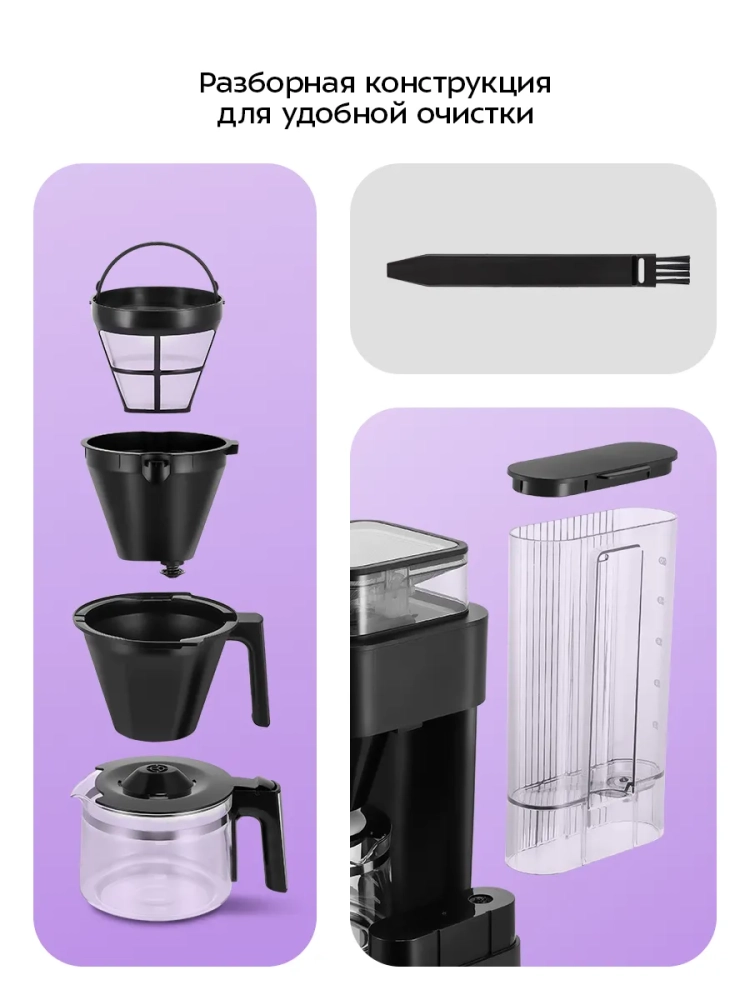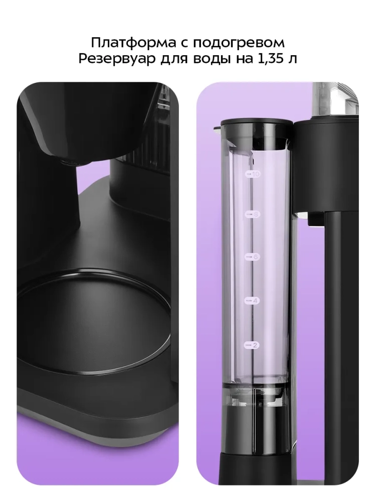Воронка кофемашины оборудована противокапельной системой — затвором, останавливающим подачу кофе при вынимании кофейника из кофемашины. Вы можете налить кофе в чашку, не дожидаясь окончания приготовления.