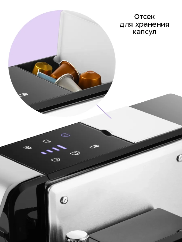 Капсульно-рожковая кофеварка поможет приготовить эспрессо, американо, капучино, а также множество других видов кофе на ваш вкус.