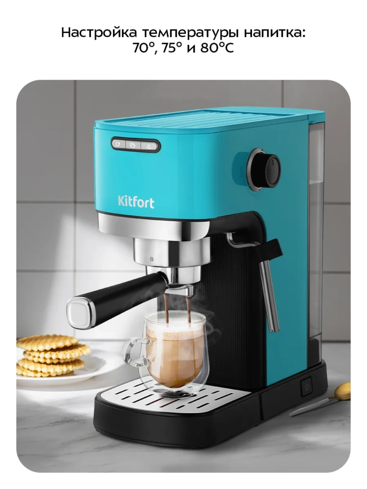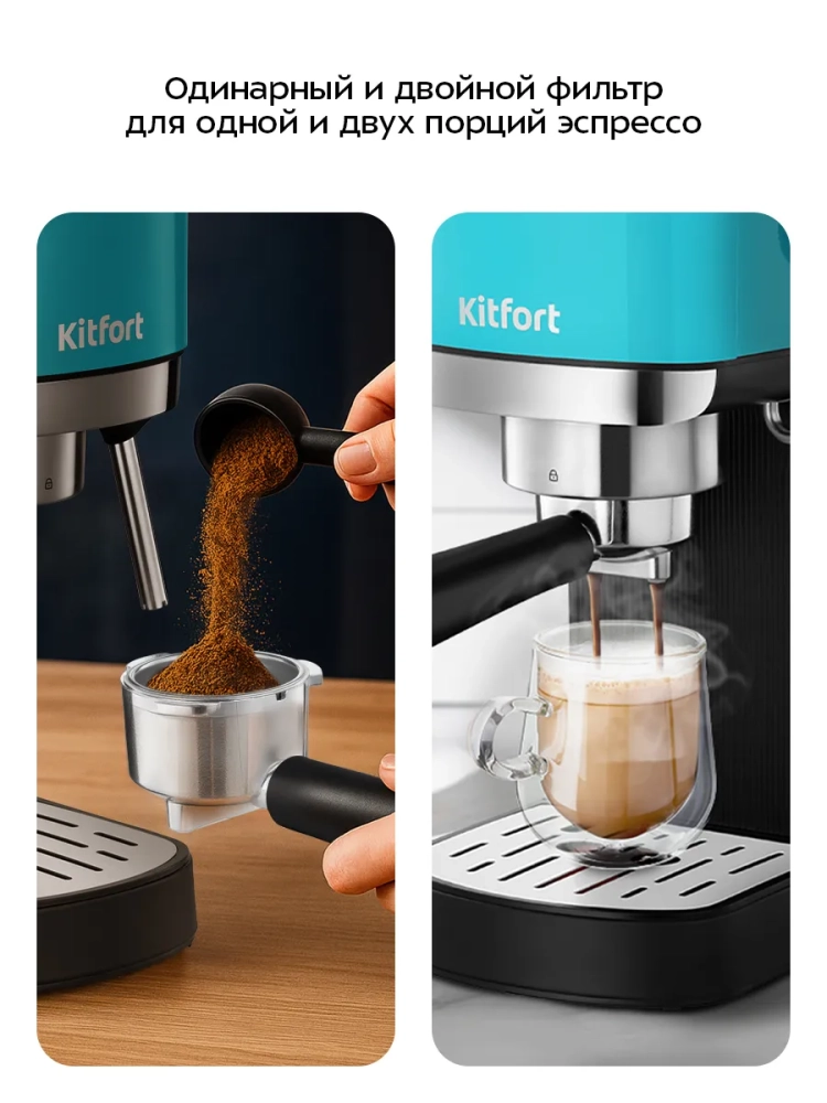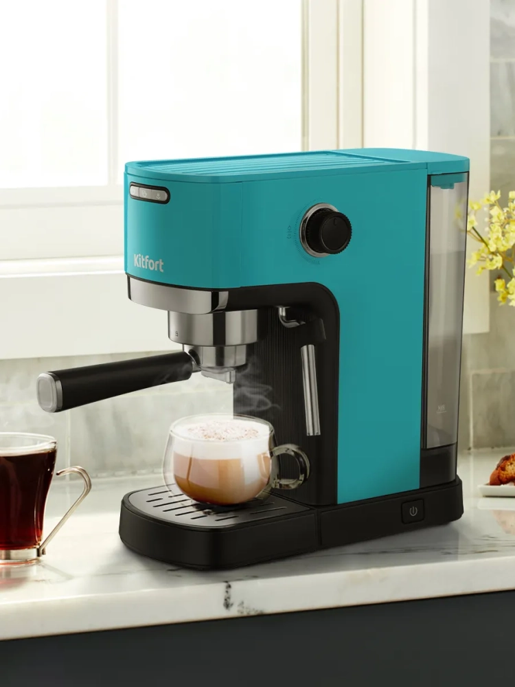 Кофеварка Kitfort КТ-7461 поможет приготовить кофе эспрессо, капучино или латте, а также множество других видов кофе на ваш вкус. С помощью стимера вы можете приготовить молочную пенку, а также подогреть паром остывший напиток.