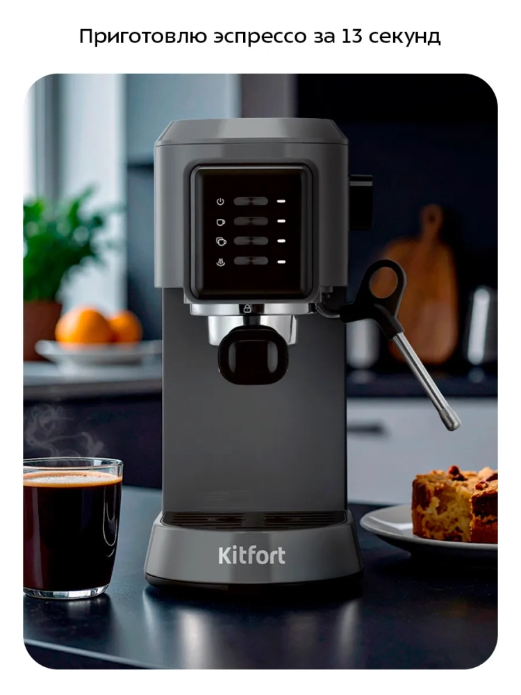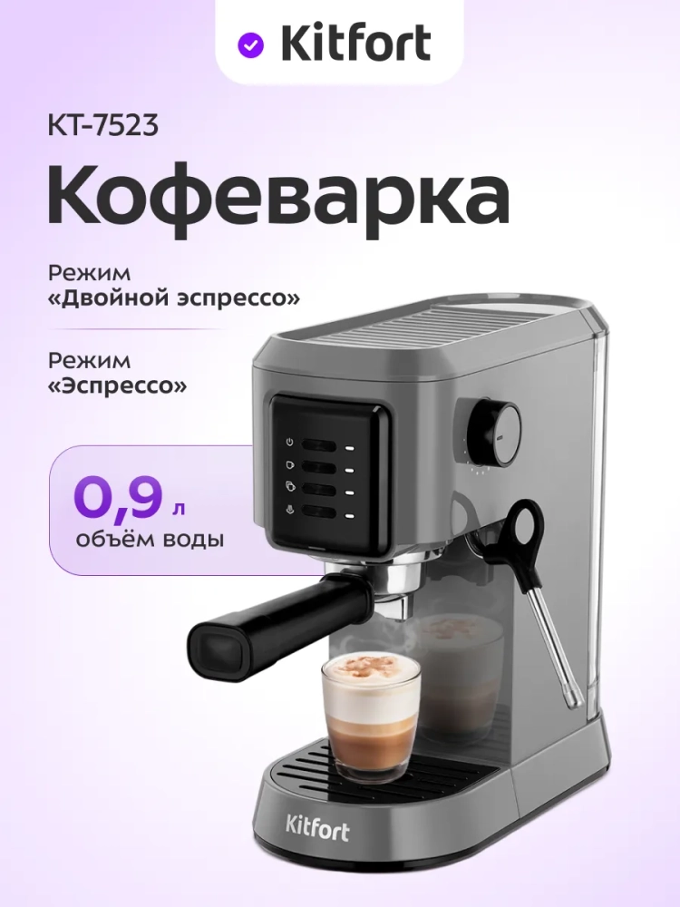 Кофеварка Kitfort КТ-7523 поможет приготовить кофе эспрессо, капучино или латте, а также множество других видов кофе на ваш вкус. С помощью стимера вы можете приготовить молочную пенку, а также подогреть паром остывший напиток.