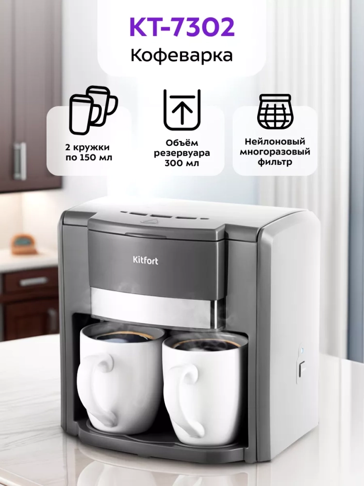 Кофеварка Kitfort КТ-7302 — это надежный выбор для тех, кто ценит качество и удобство. Она идеально подходит для кухни любого размера, обеспечивая вас свежим кофе каждое утро. Эта техника — ваш верный помощник в создании идеального кофе дома.