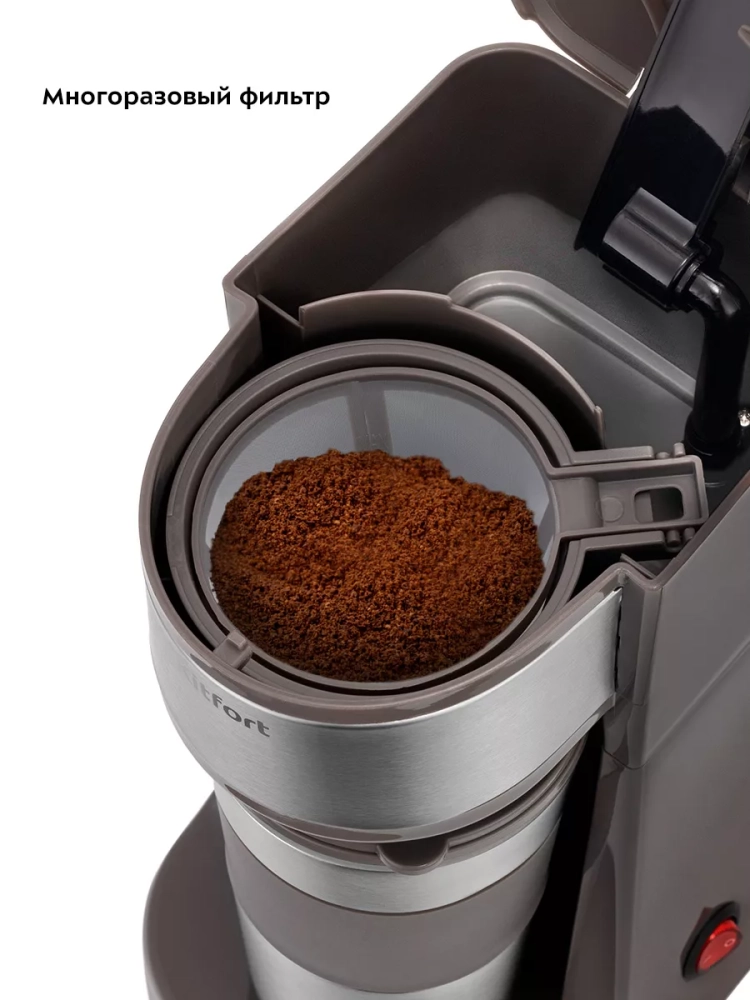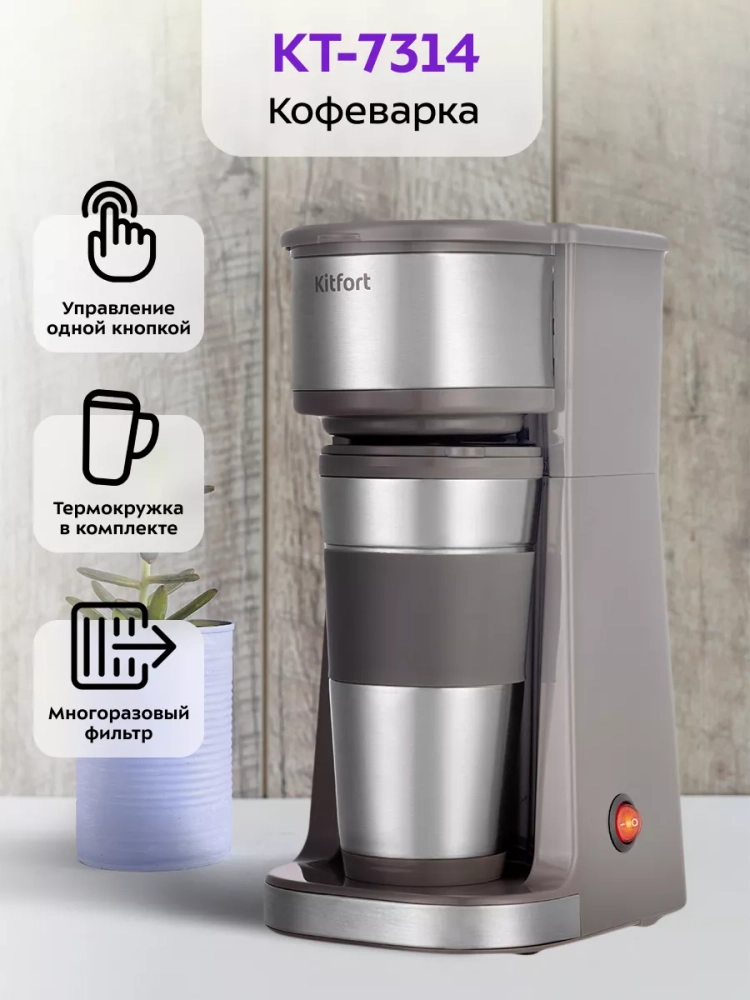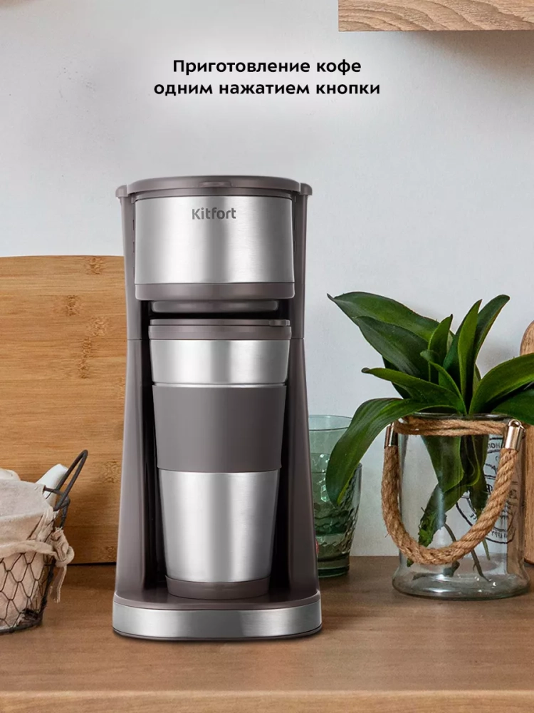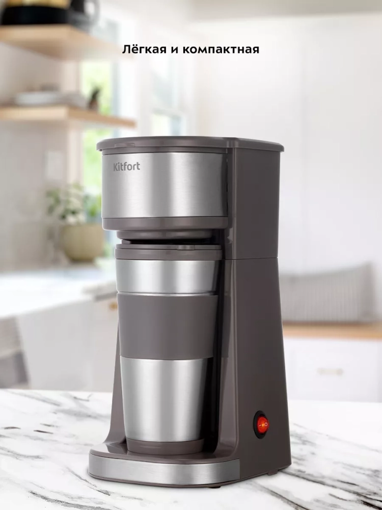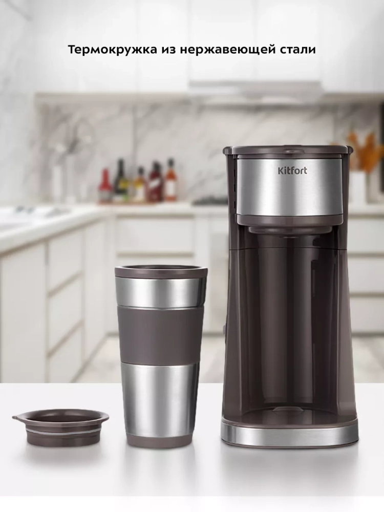 Термос кофеварки выполнен из высококачественных материалов, что обеспечивает долговечность и сохранение тепла. Кофеварка Kitfort — это не просто бытовая техника, а незаменимый помощник в приготовлении вашего любимого напитка.