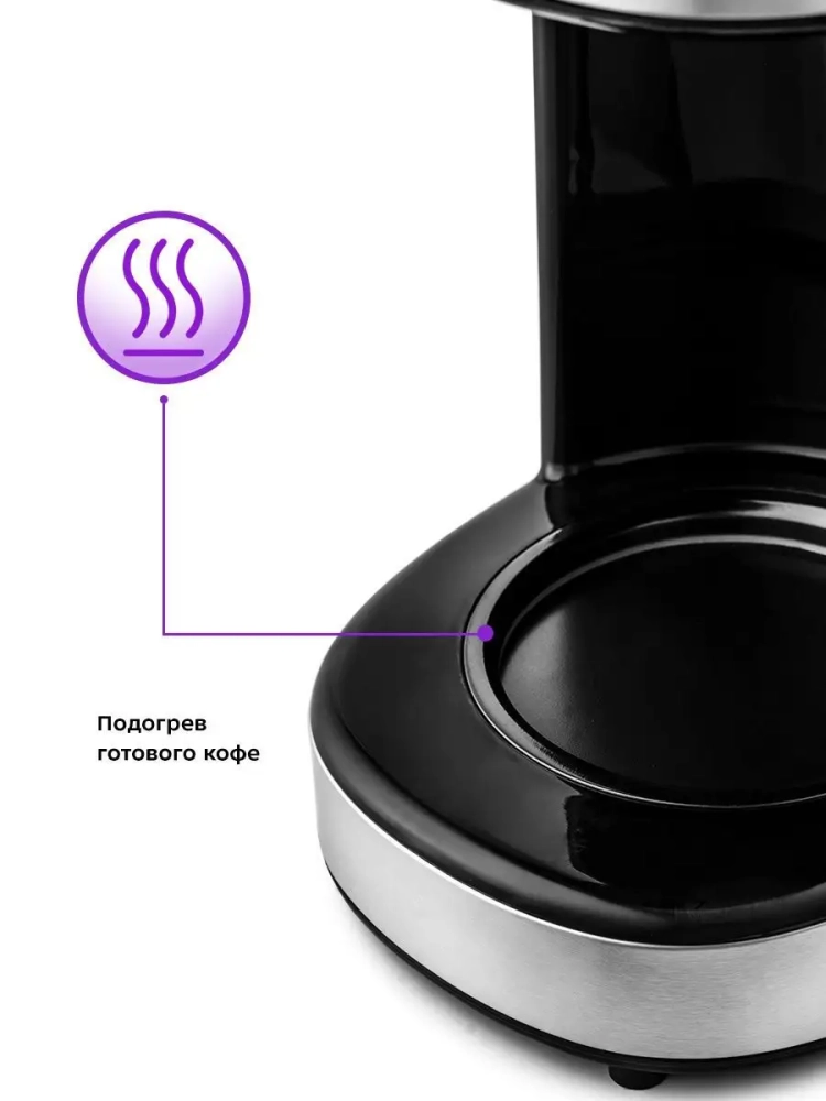 Кофеварка поддерживает температуру воды в диапазоне 80–90 °С, что обеспечивает оптимальное заваривание. После завершения процесса приготовления, кофеварка автоматически переходит в режим подогрева, сохраняя кофе горячим в течение 40 минут. Это делает её удобной для использования в домашних условиях и на работе.