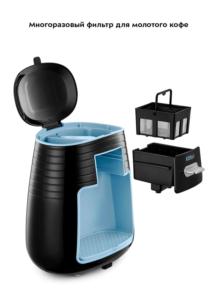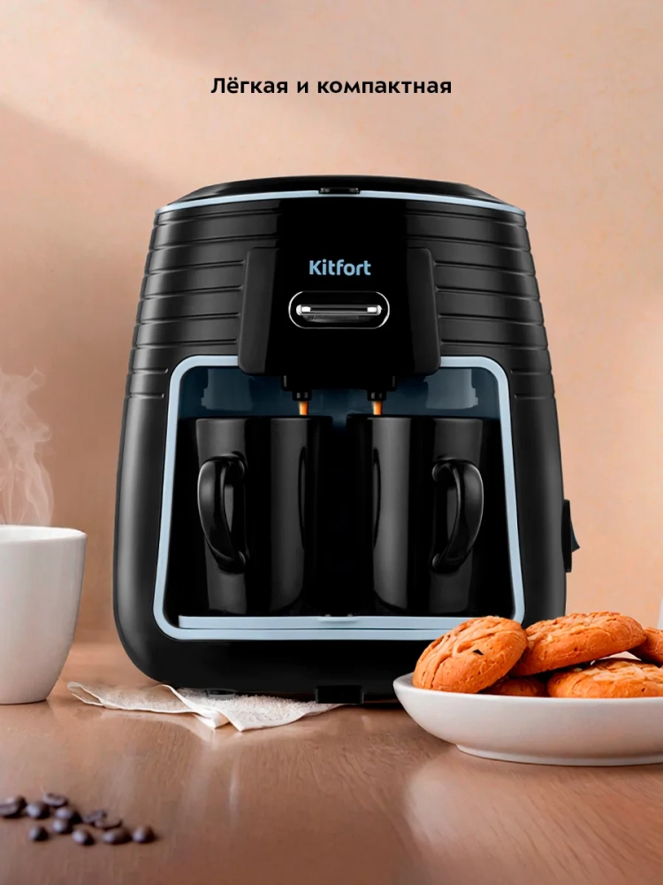 Электрическая кофеварка Kitfort — это не просто кофемашина, а настоящий помощник на вашей кухне. Она сочетает в себе удобство использования и высокую производительность, что делает её отличным выбором для тех, кто ценит качество и комфорт. Кофеварка подходит для приготовления кофе в домашних условиях, а также в офисе, обеспечивая вас и ваших коллег бодрящим напитком в любое время.