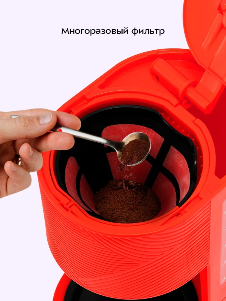 Капельная кофеварка Kitfort КТ-7652 готовит ароматный черный кофе из молотого кофе.