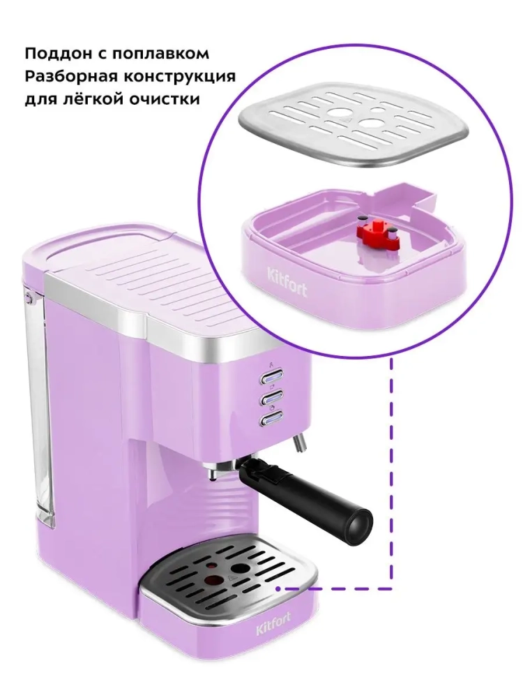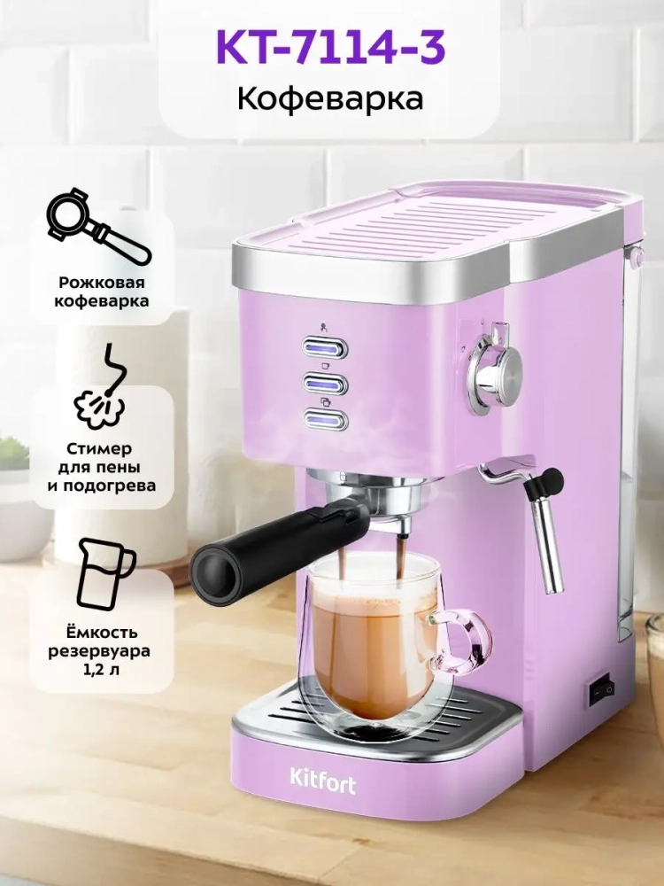 Рожковая кофеварка Kitfort КТ-7114 поможет приготовить кофе эспрессо, капучино или латте, а также множество других видов кофе на ваш вкус. С помощью стимера в рожковой кофеварке вы можете подогреть паром остывший чай или молоко.