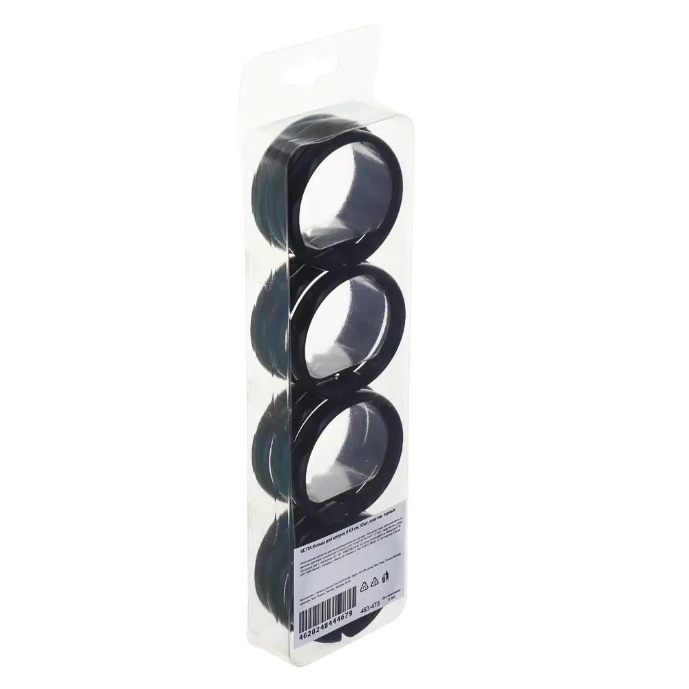 Кольца для шторок VETTA диаметром 4,5 см, 12 штук — это практичный аксессуар для крепления душевых шторок или занавесок. Они отличаются прочностью, легкостью и долговечностью благодаря качественному пластику. Кольца имеют классический черного цвет, который подойдет к любому интерьеру ванной комнаты. В комплекте 12 колец, что обеспечивает удобное и надежное крепление шторки на карниз. Такой набор поможет организовать пространство в ванной и придать ему аккуратный вид.