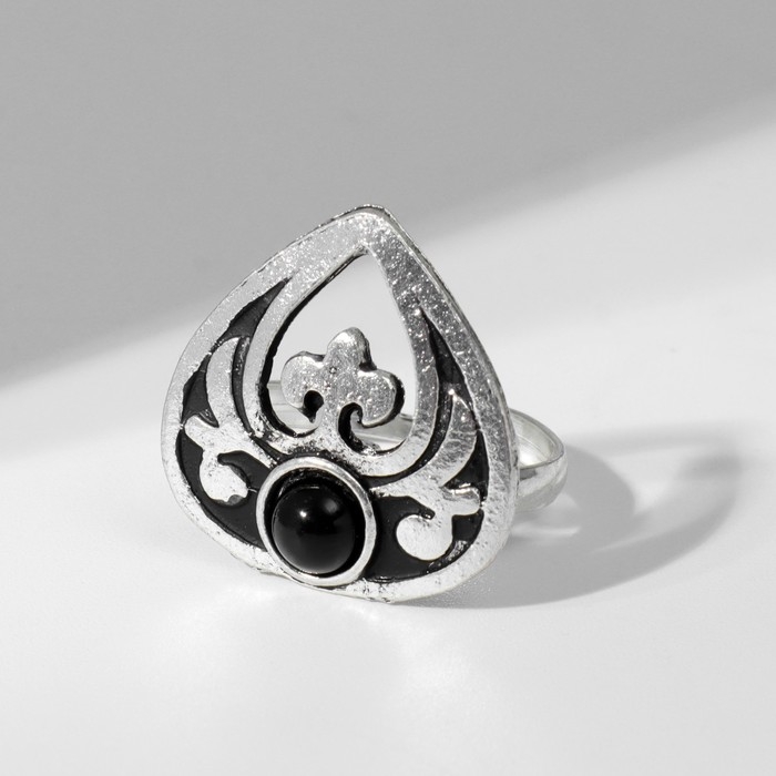 Кольцо «Этника» капля, цвет чёрный в чернёном серебре, безразмерное