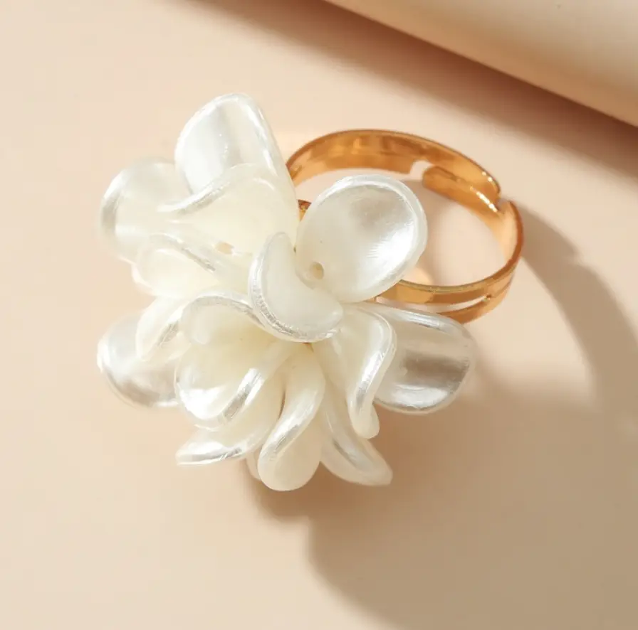 Кольцо массивное Цветок белый жемчужный